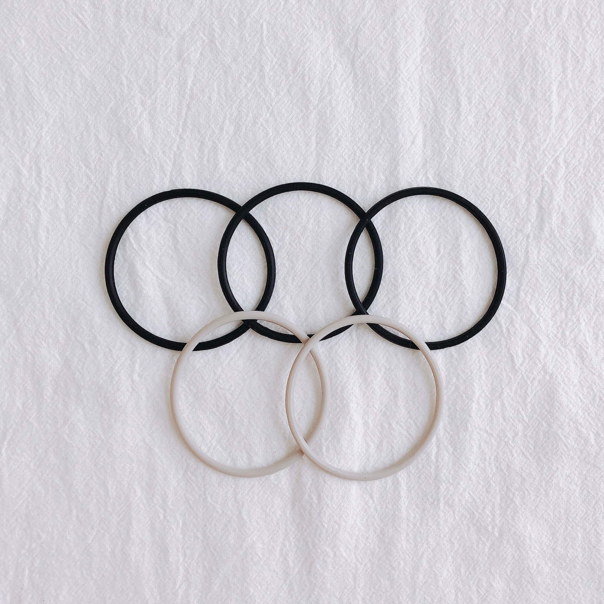 繋ぎ目がないからなのか、普通のヘアゴムよりおしゃれに見えるのでブレスレット感覚でつけておけますよ!