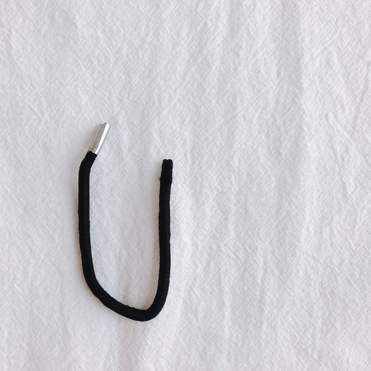 写真は、実際にいざ結ぼうとした時にブチっと切れてしまったヘアゴム。未使用だったのになぁ……。