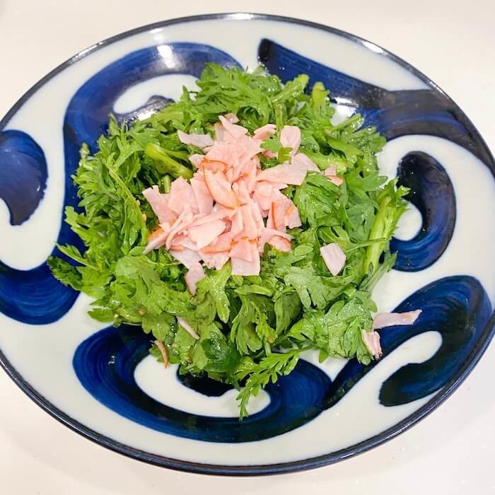 - 春菊を洗って水にさらし、適度な大きさに切り、水気をとる