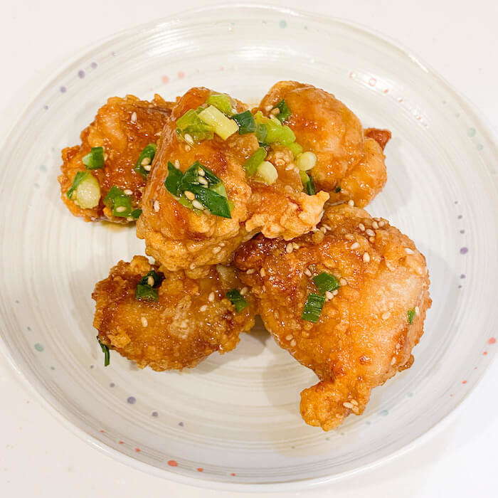 うすめの下味をつけて揚げた鶏の唐揚げに、小ねぎ等の薬味と旨たれを絡めるだけ! いつもの唐揚げも味変になっておいしくいただけます。