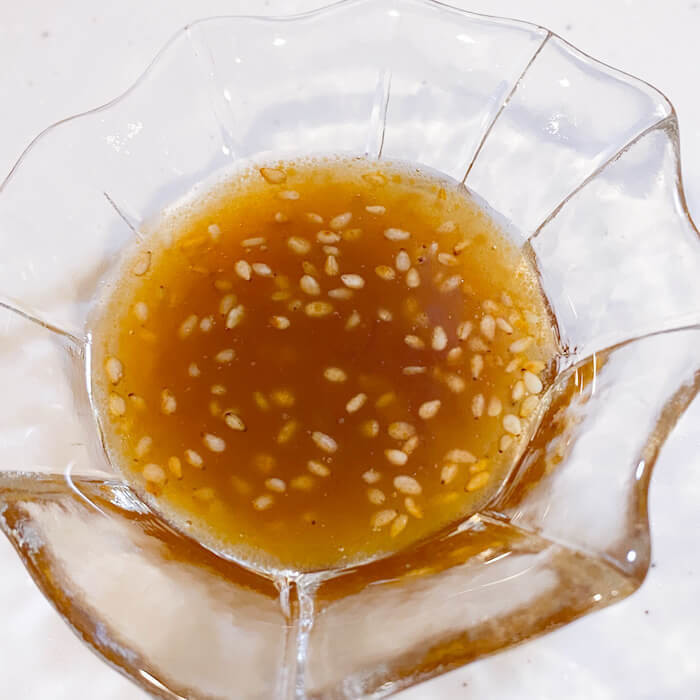 見た目はゴマが入った醤油ベースのドレッシングです。