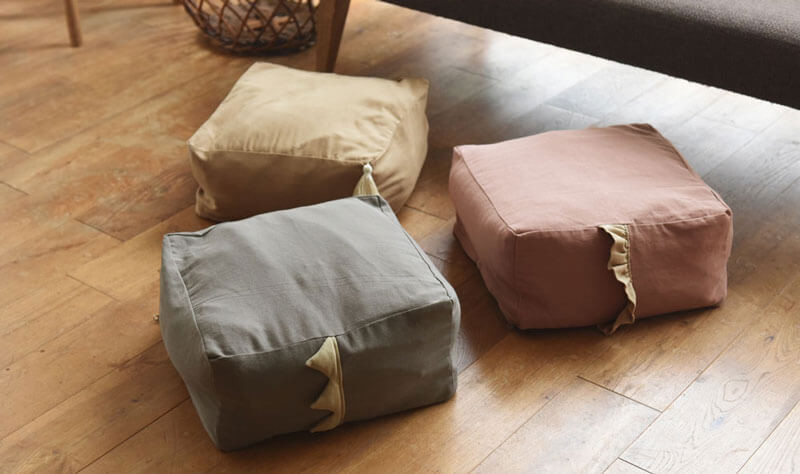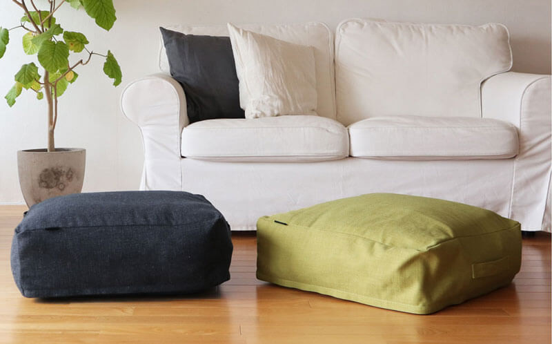 スクエア型(58×58cm)は、お布団を収納しやすく、並べてソファ代わりに使うのにも◎。