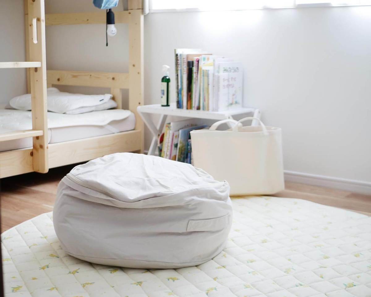お子さんがちょこんと座るのにぴったりなのはこちら。アンジェWebshopのkukka ja puu (クッカヤプー)から登場したクッション&キッズチェアになる 布団収納ケース。
