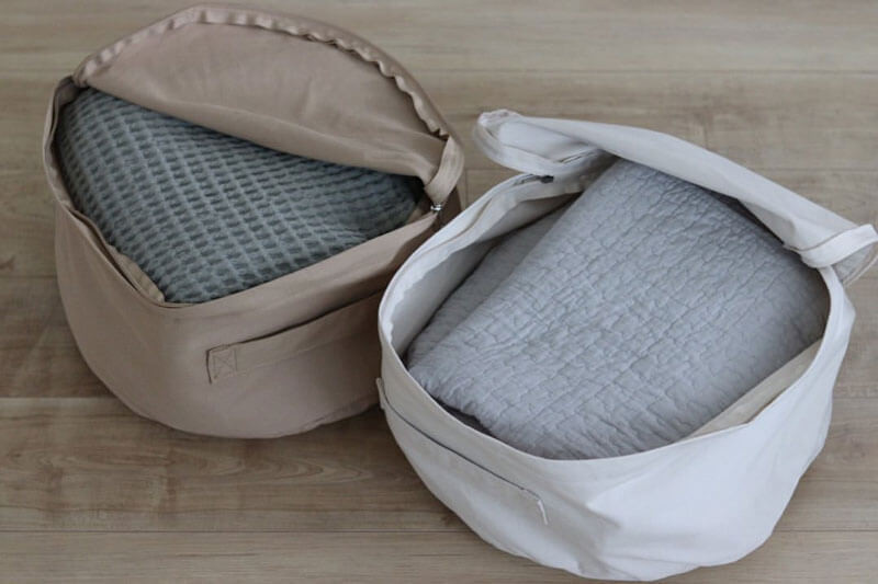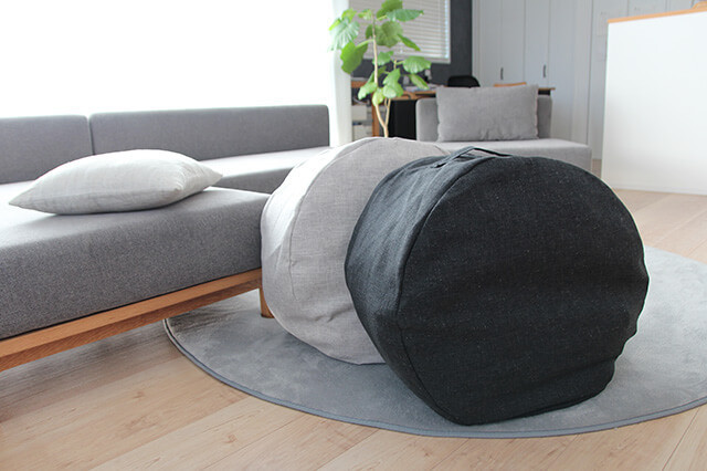 オフシーズンに収納場所に困る寝具類を入れておくだけで、ふかふかのリビングクッションのできあがり。