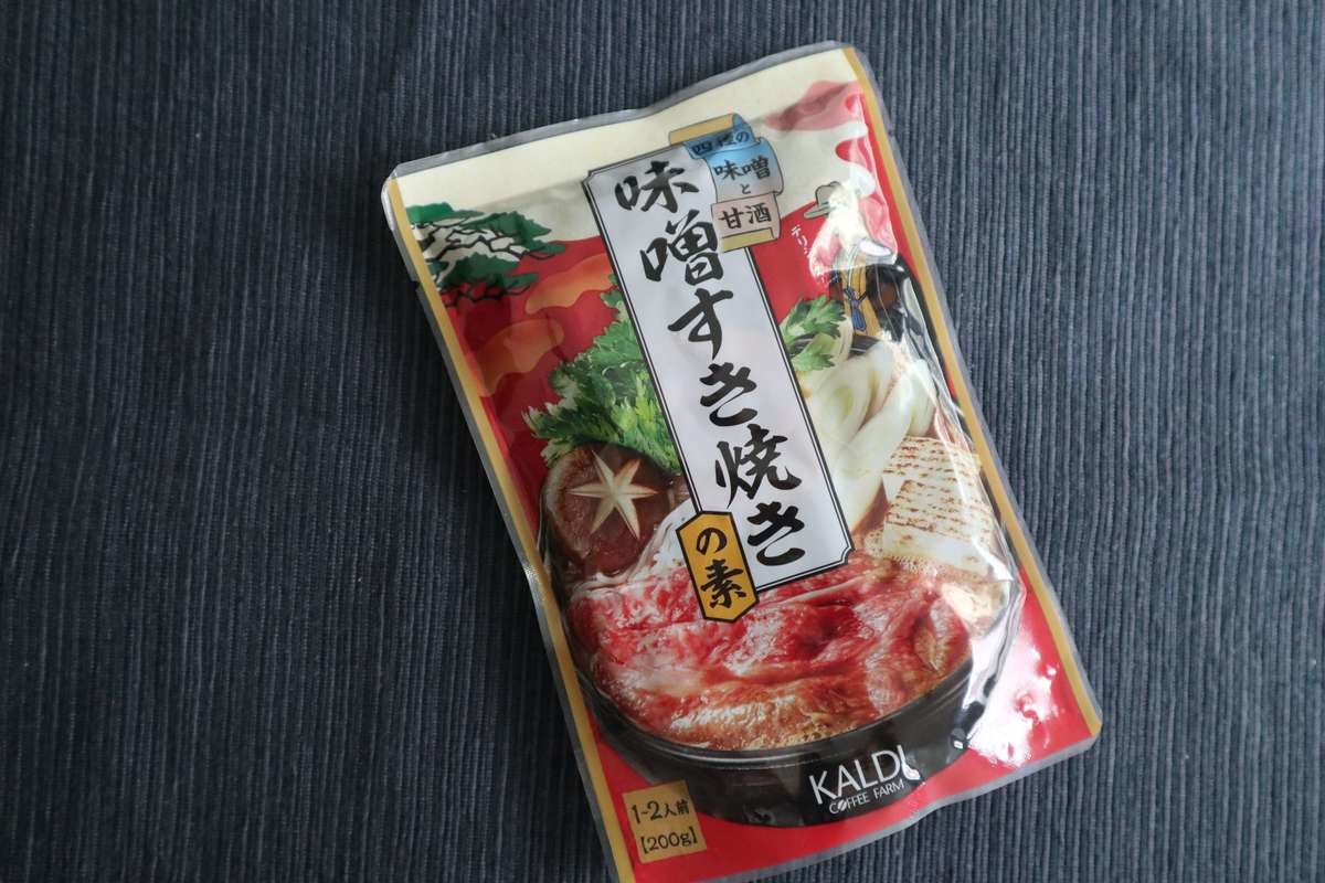 カルディ《味噌すき焼きの素》200g円177円(税込)。2人前です。 新商品です。