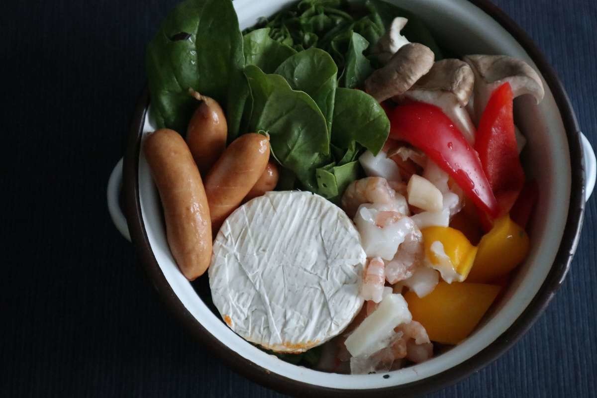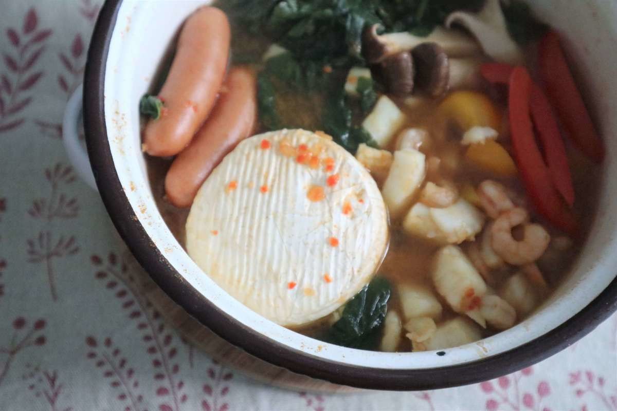 溶けたカマンベールチーズに、具材をディップして食べても美味しいです。 チーズが鍋つゆに溶けだすとまろやかになり、2度美味しいです。