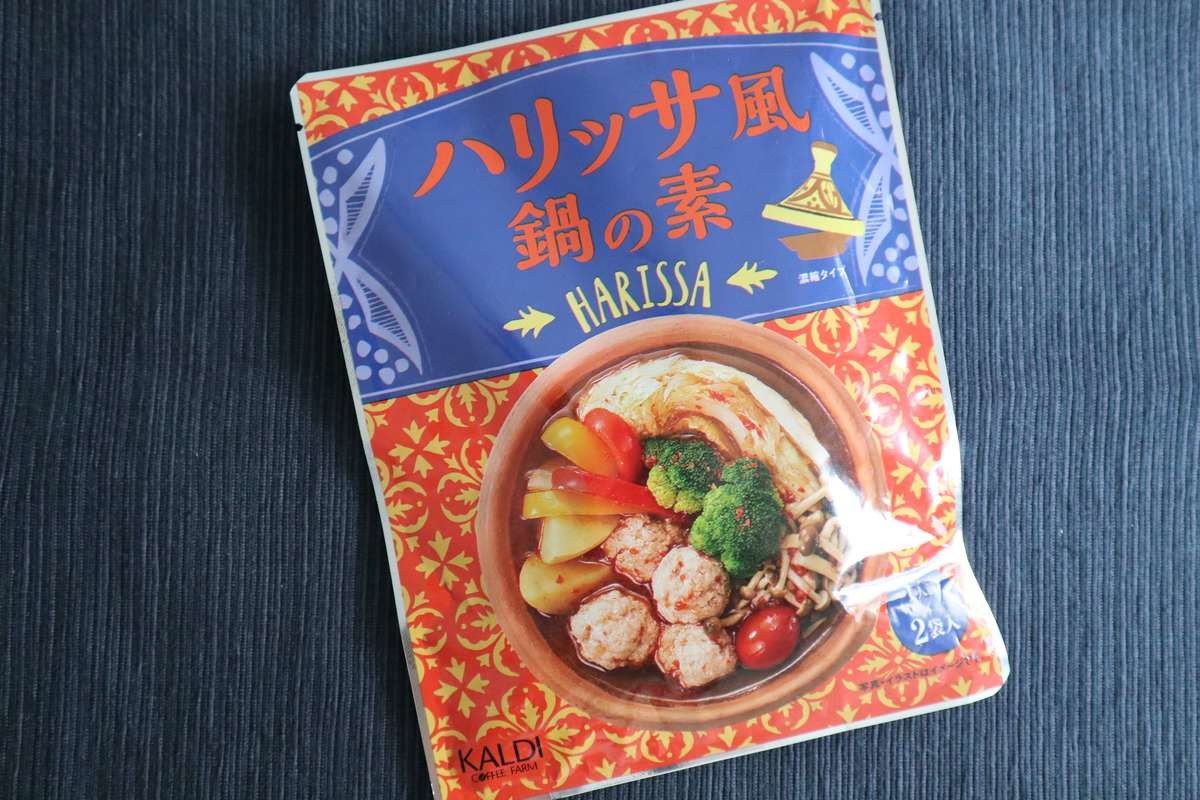 カルディ《ハリッサ風鍋の素》70g213円(税込) 新商品です。 カルディで人気のモロッコ・地中海生まれの万能調味料“ハリッサ”が鍋つゆに!! これは期待大です。