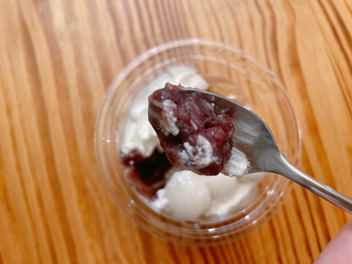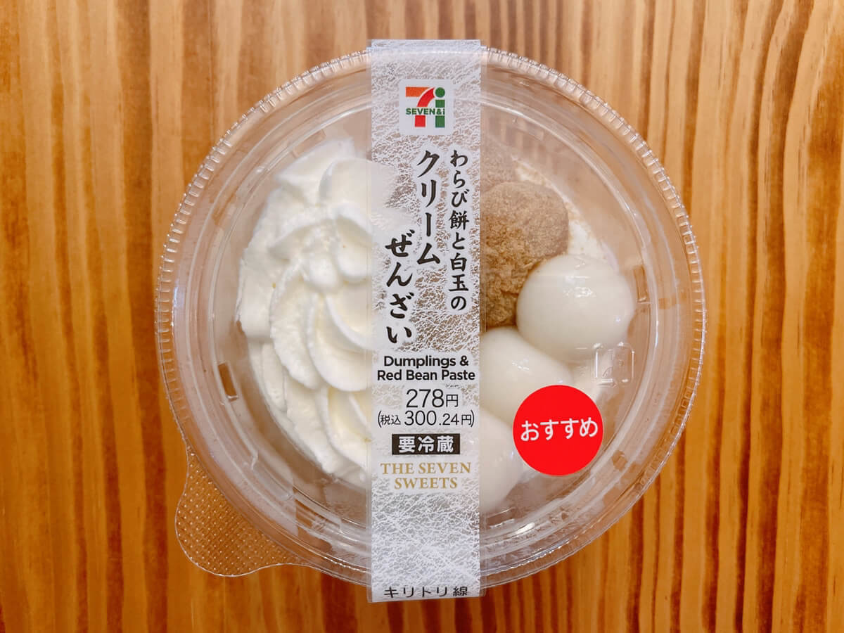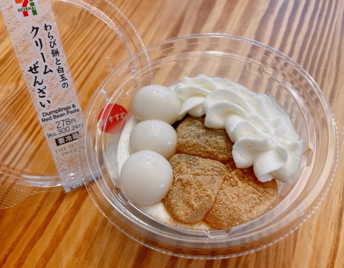 すると、気になる商品を発見!それが「わらび餅と白玉のクリームぜんざい」です。白玉もわらび餅もクリームも盛り盛り!