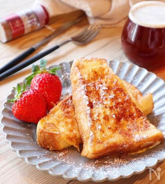 短時間で作れるのに、驚くほどしみしみふわふわに仕上がるフレンチトーストです。シロップやシナモンなど、お好みのトッピングで楽しんでくださいね。
