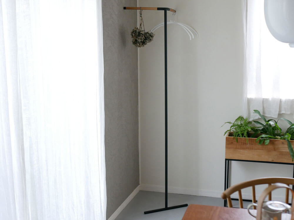 コーナーさえあれば簡単に設置できるコートハンガーは、優しい天然木とキリっとしたスチールの組み合わせで、インテリア性もGOOD。 スタイリッシュな直線ラインが、モダンアートのように部屋の隅に佇みます。