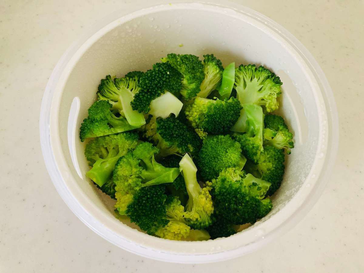 ザルとフタを付けたまま電子レンジに入れて数分後、ブロッコリーが見事に蒸し上がりました!いつもと変わらない味でおいしかったです♪