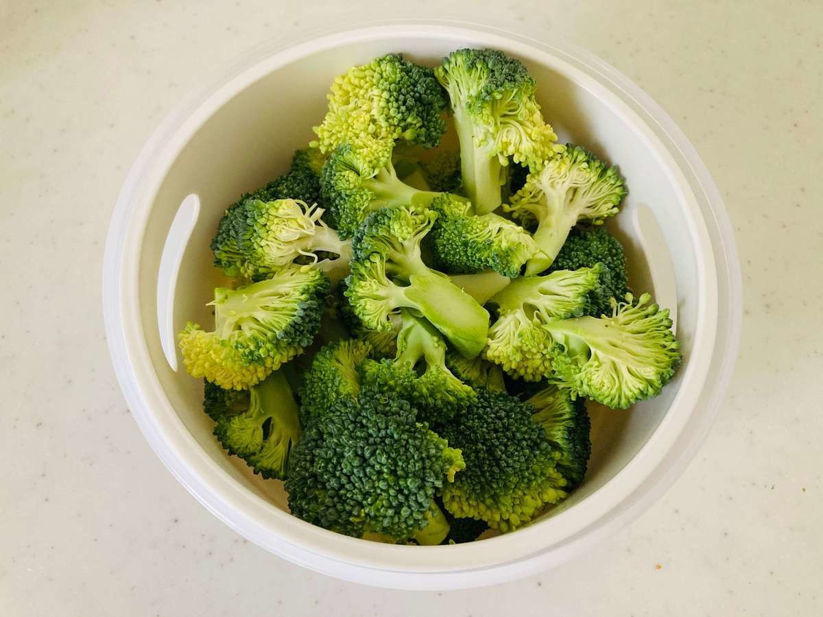 気になるのは、「それぞれどれくらいの量が入るのか」ということ。まずは小にブロッコリー1房を入れてみたところ、ぴったり入りました!