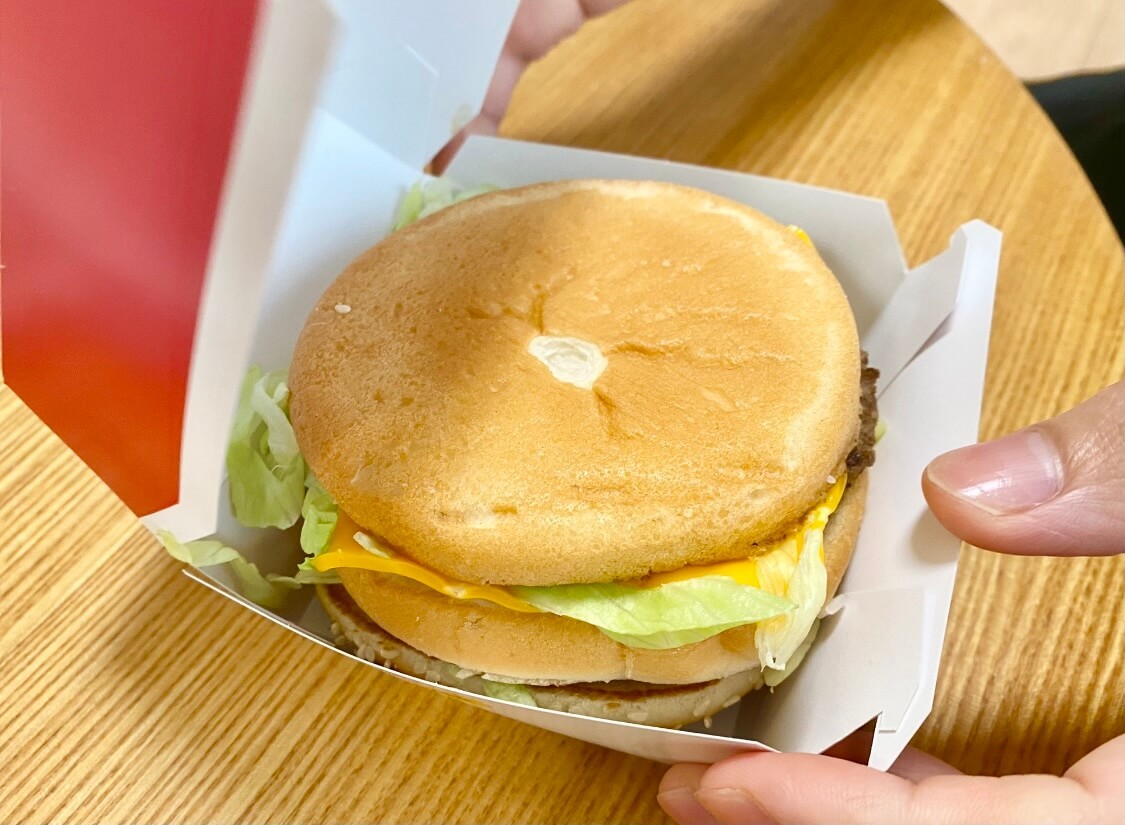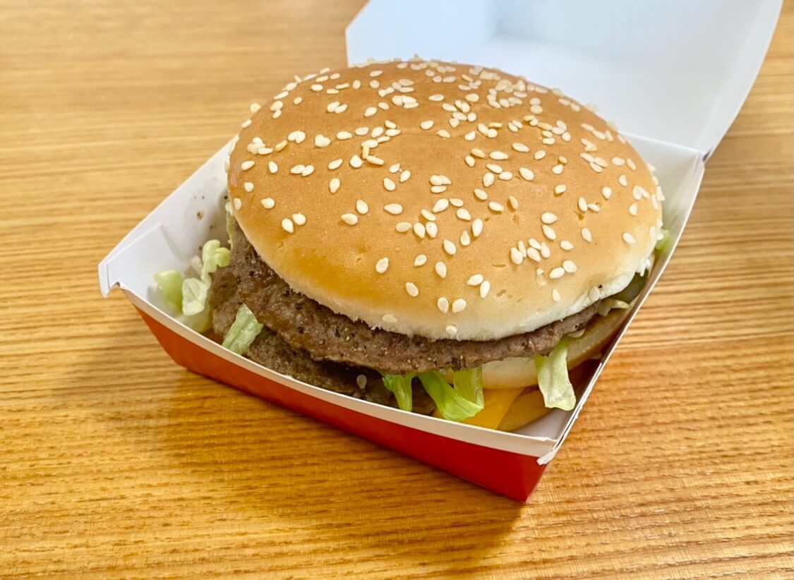 今回きれいに食べたいビッグマック®。パティが2枚、バンズは3枚入ってボリュームたっぷり!