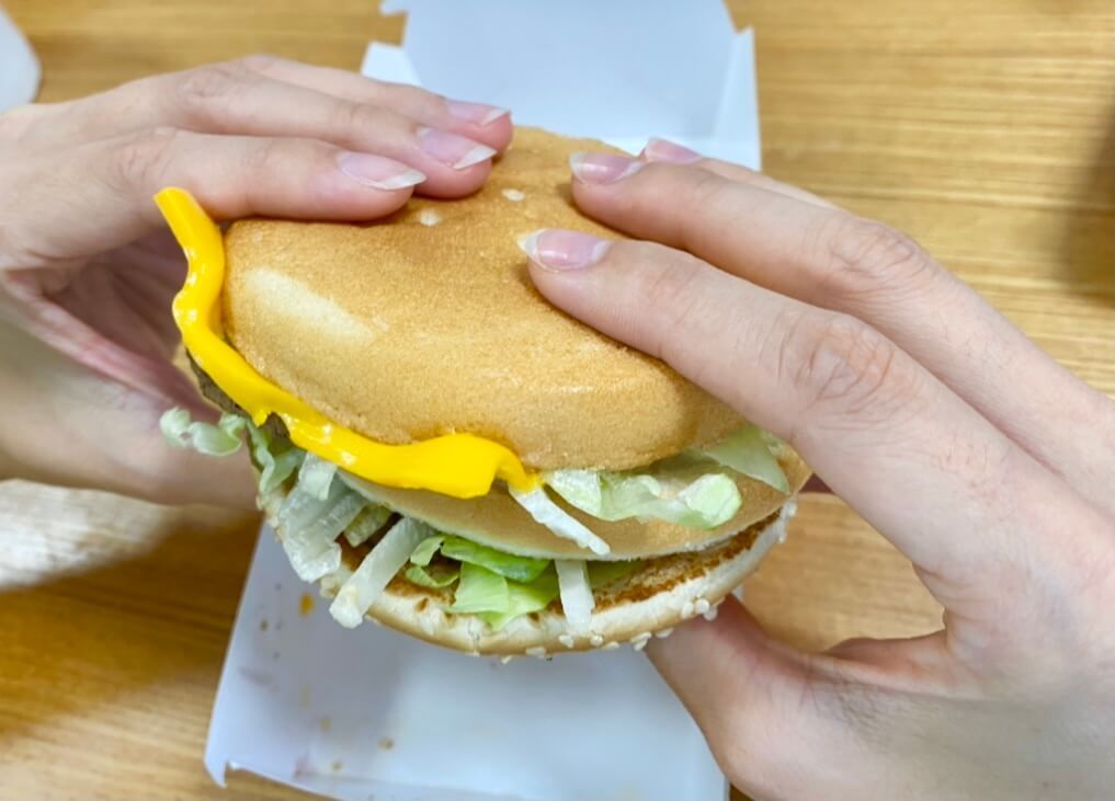 ハンバーガーの綺麗な食べ方②"ハの字"に持つ