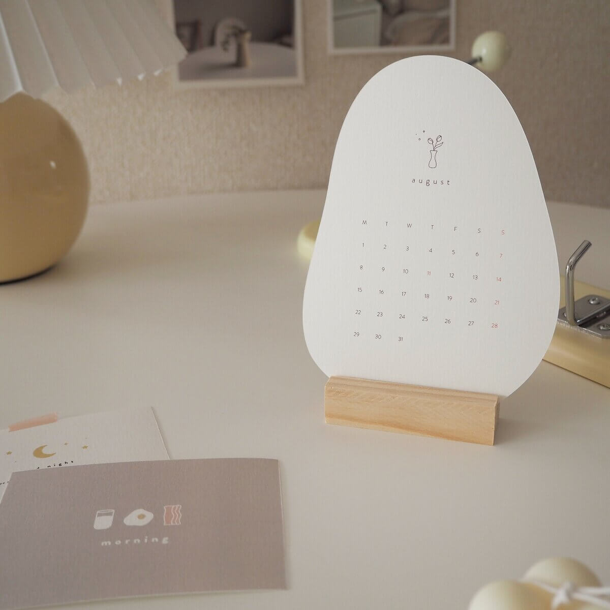 今大人気の韓国雑貨のようなおしゃれな卓上カレンダー。角がなくてとてもやわらかい印象でとてもかわいいカレンダーです。