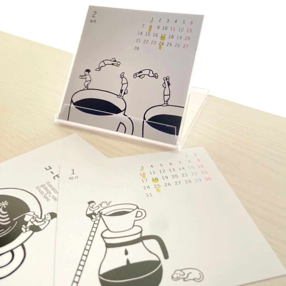 小人のコヒ郎くんと毎月コーヒーを楽しめるコーヒーカレンダー。
