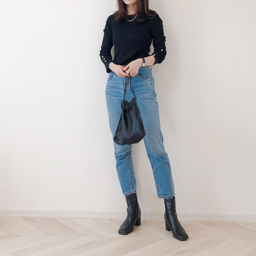 着丈をやや短めに設定したジーンズは、秋冬コーデにはショートブーツとも相性抜群!