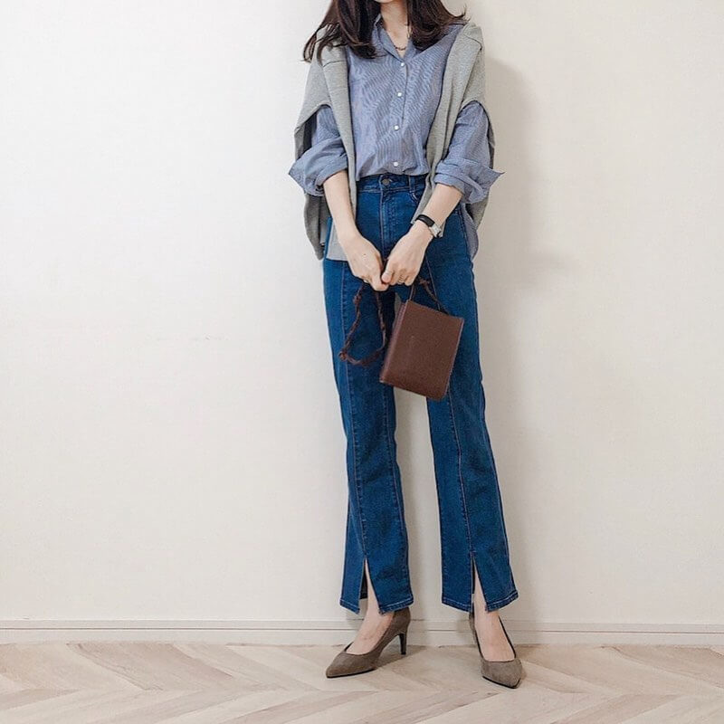 脚長効果を発揮してくれるジーンズを、ファッショニスタの着こなしに併せてご紹介していきますね。