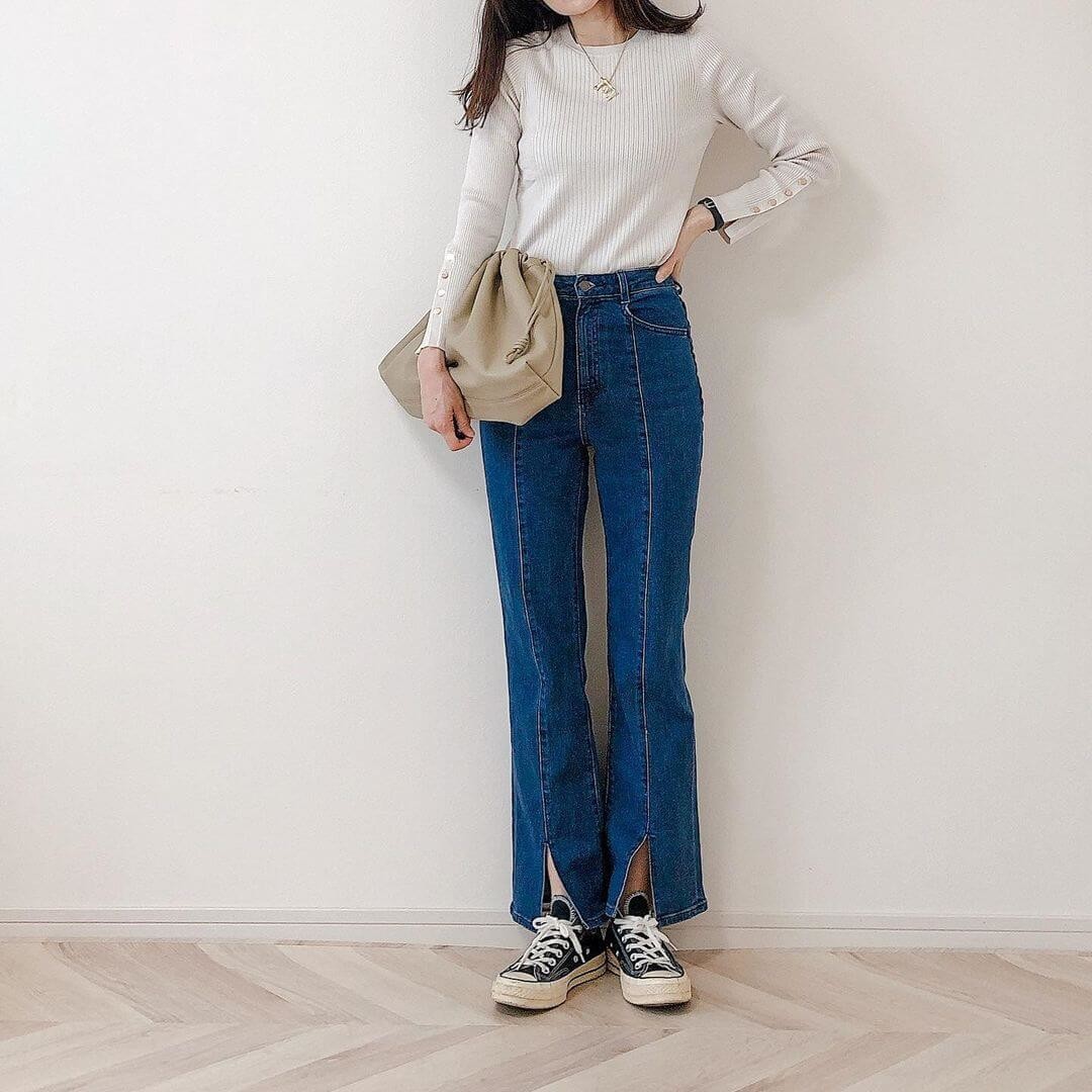 GUからスリット入りのフレアジーンズに注目して、ファッショニスタのアレンジと共にお伝えしました。