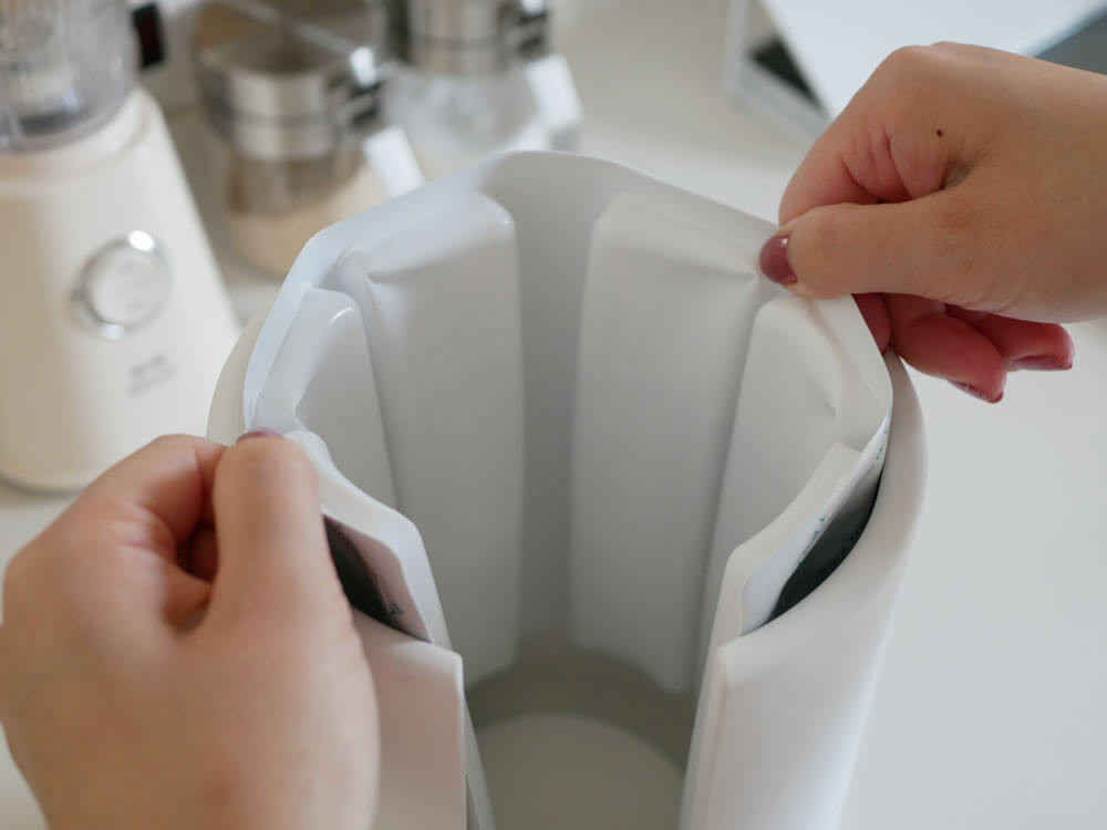 「【soil】ボトルクーラー」は、冷凍庫で凍らせた特殊蓄冷材をボトルクーラーにセットするだけ、本体の珪藻土が結露を吸い取り、水滴を拭く手間も省け、氷水を用意しなくていいので手軽で便利。