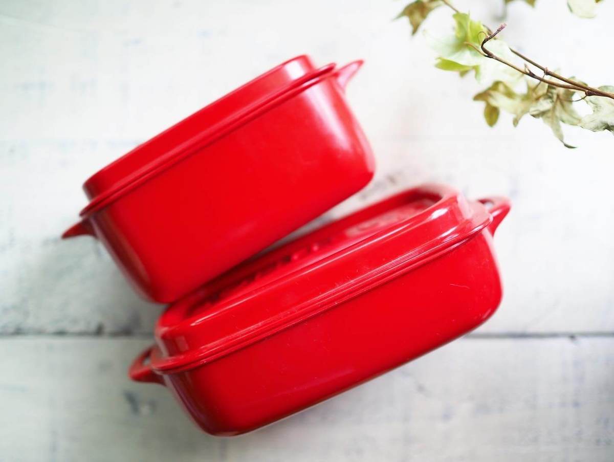 光沢感のあるホーロー鍋のような見た目ですが、プラ製なので電子レンジや食洗器も使えるのが嬉しいポイント。