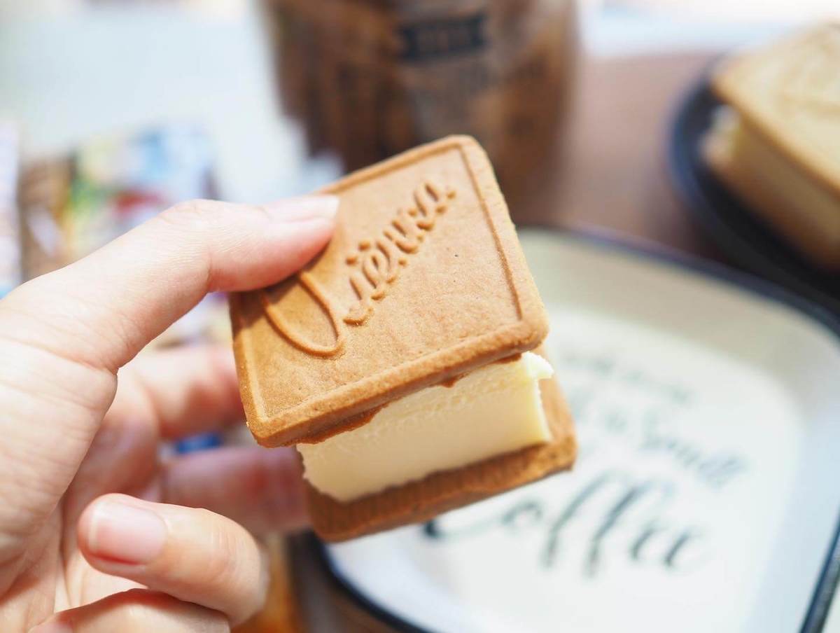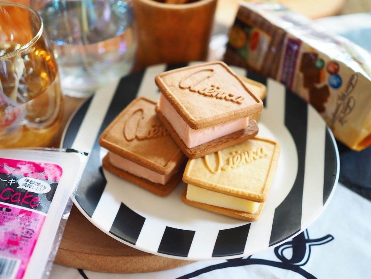 こちらもビスケットで挟んでビスケットサンドにすると、おしゃれなビジュアルに。
