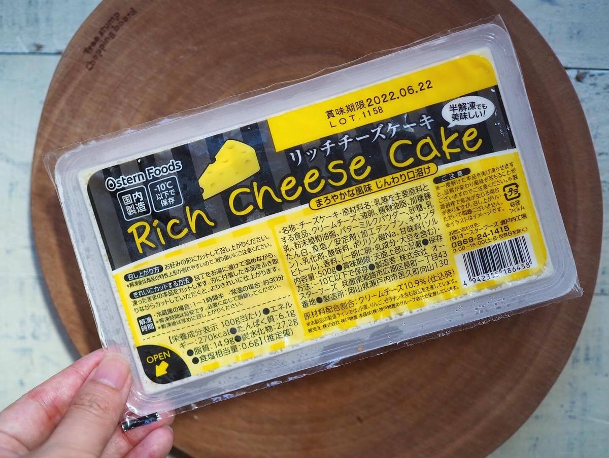 今回ご紹介するのは業務スーパーで取扱のある冷凍食品「リッチチーズケーキ」です。