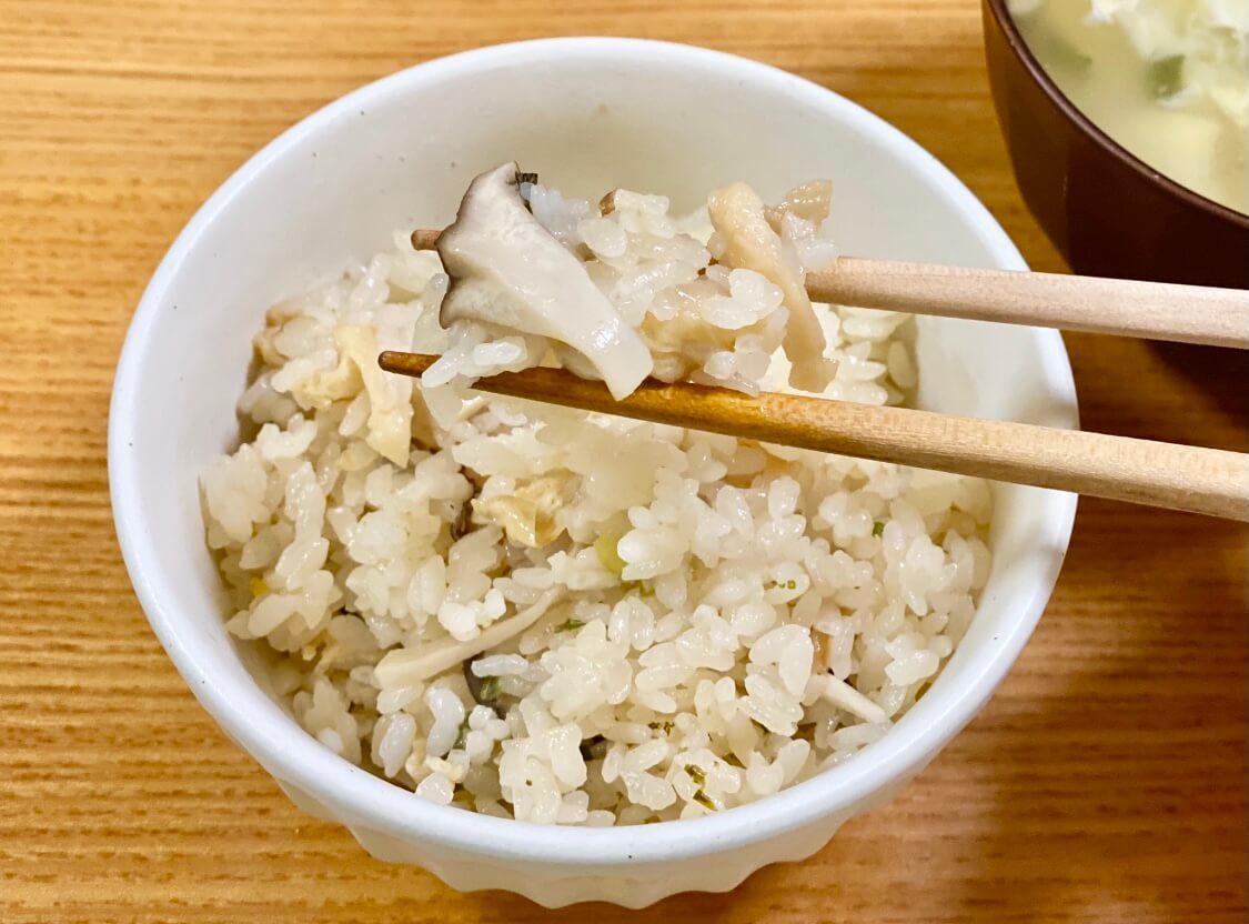 松茸風味のお吸い物のもとを入れることで松茸の香りをプラスすることができ、いつもの炊き込みごはんより贅沢な気分が味わえるんです♪