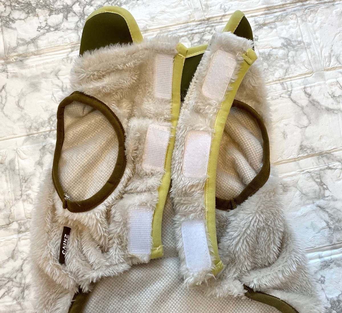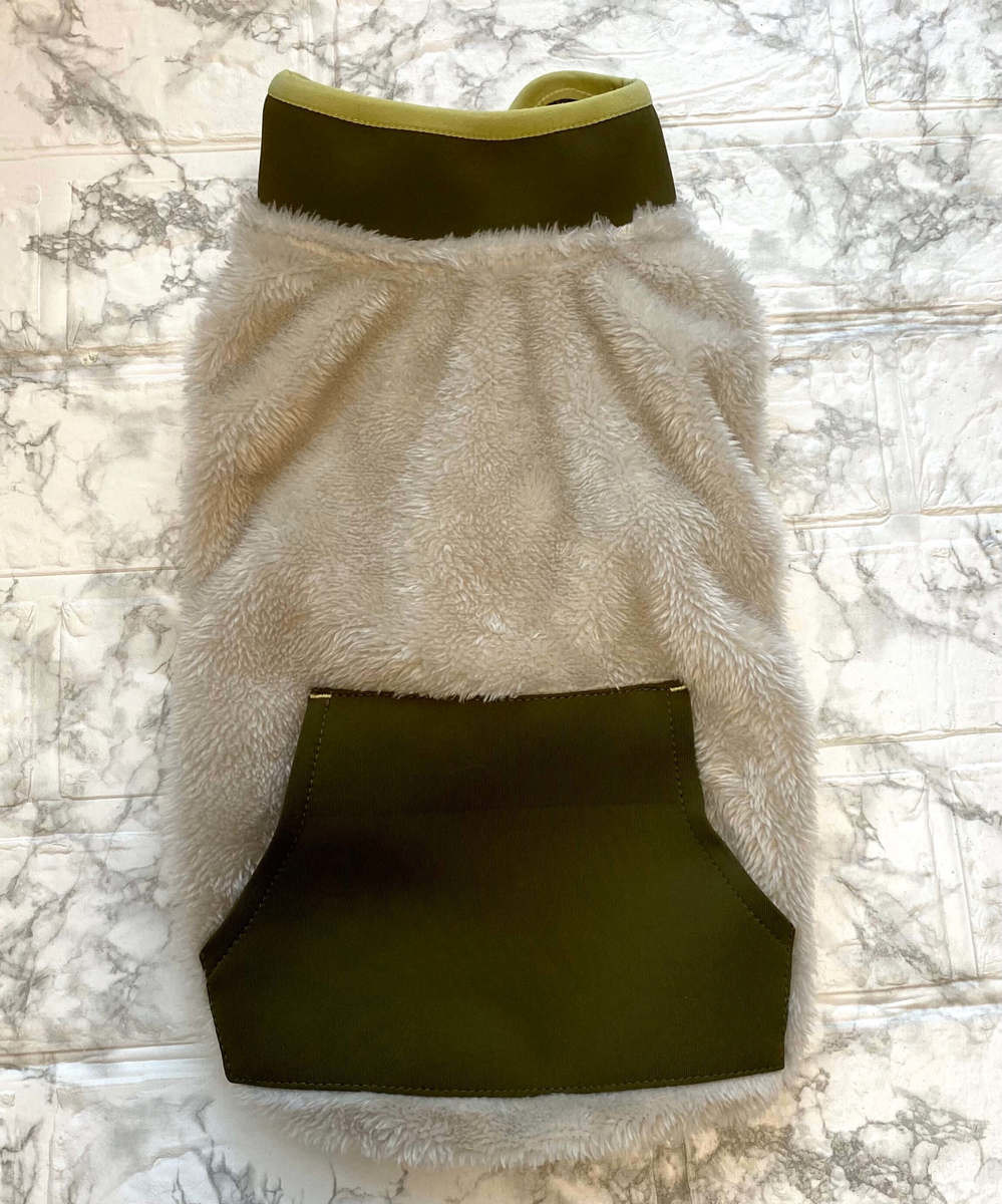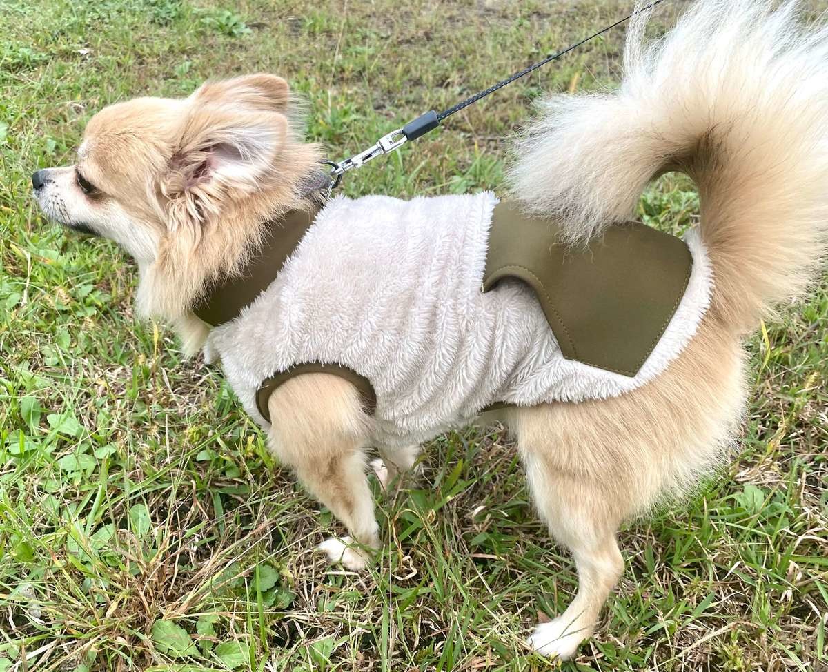 こちらは、筆者が購入した「ポケット付ボアベスト カーキ ペット服」。
