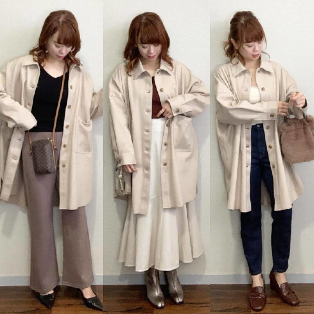 それではビッグシャツジャケットの着回しコーデを、見ていきましょう!