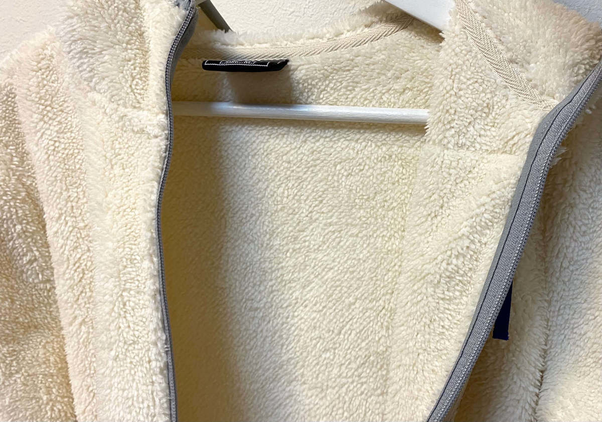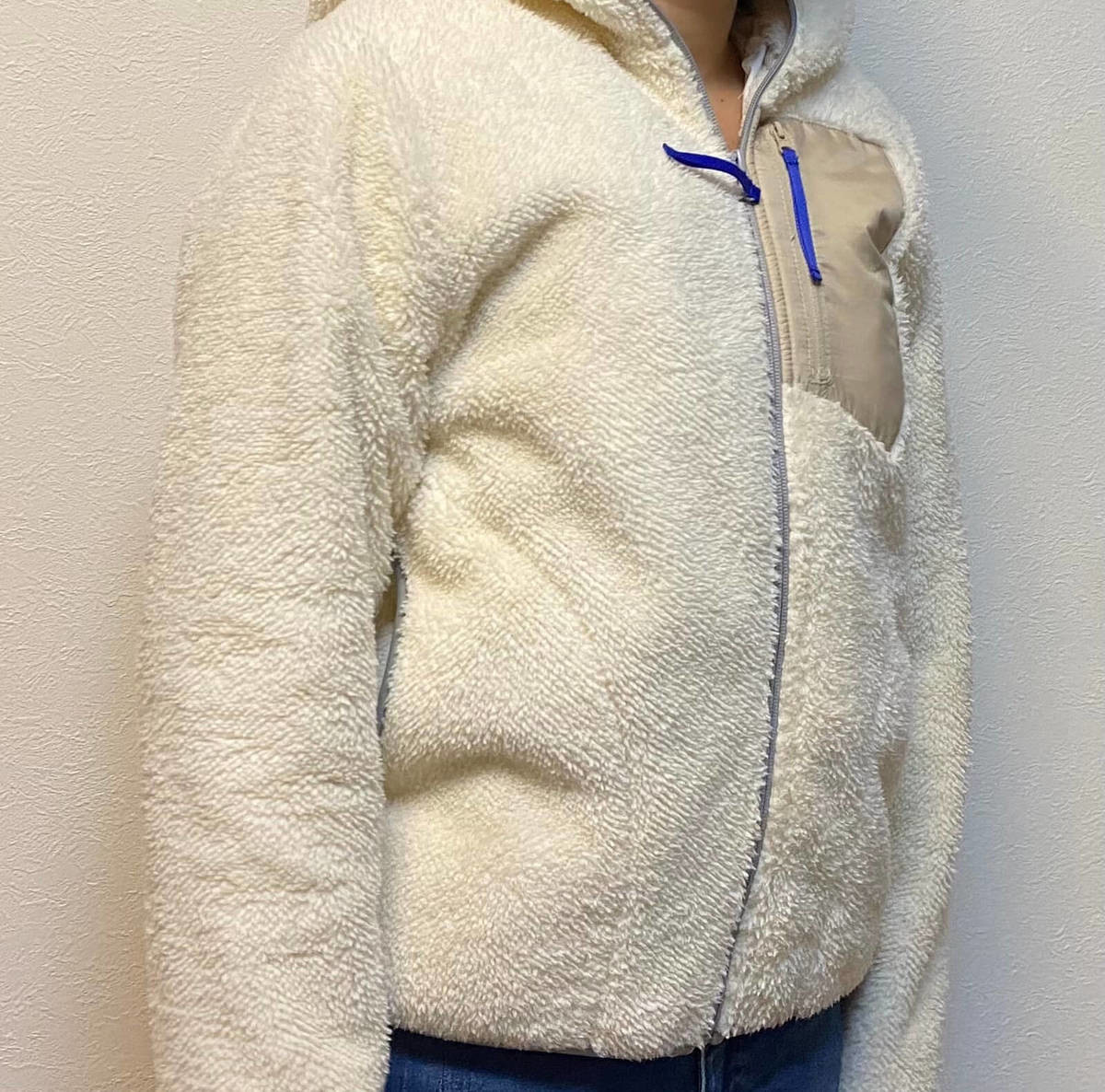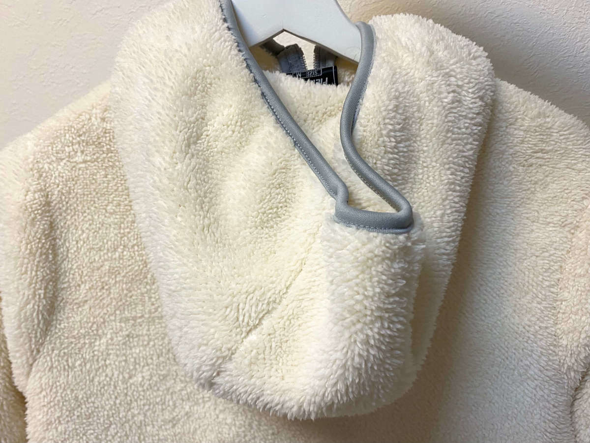 ナチュラルでかわいらしいアイボリーカラーは、アウトドアだけでなく普段着としても使えます。筆者は少しダボっとさせて着用したかったので、いつもよりも1つ大きめなサイズを選択しました。
