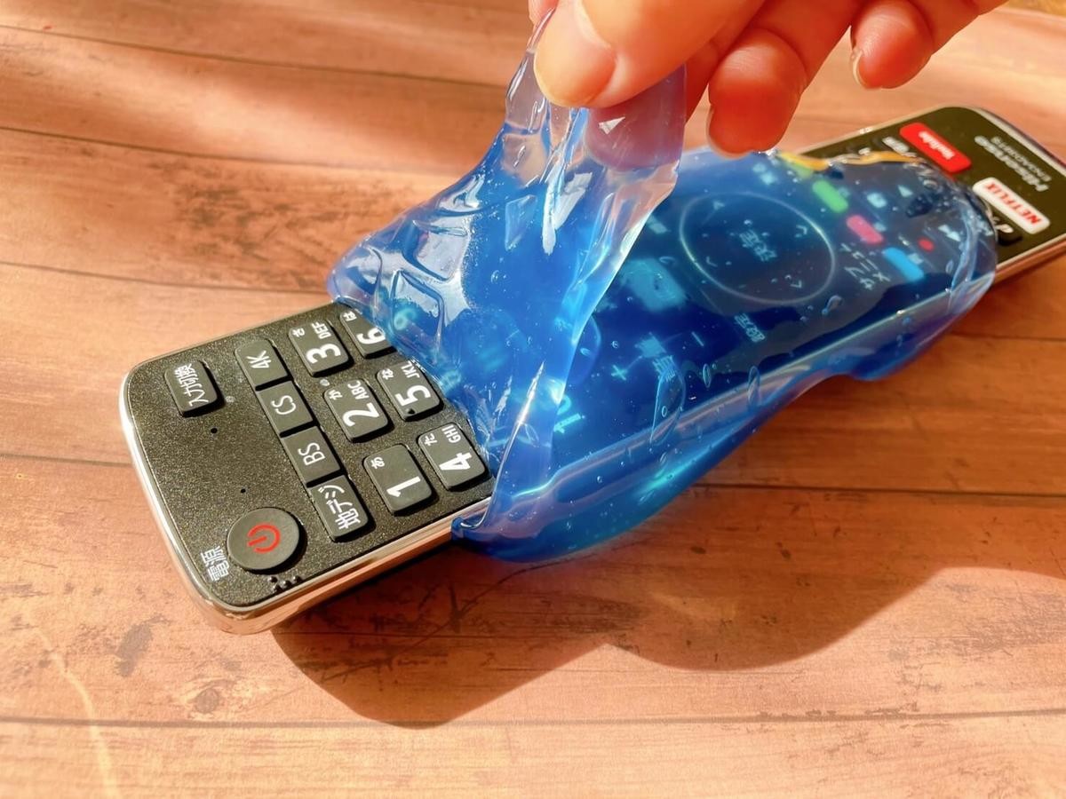すると、ジェルがトローリとキーボードやボタンの間に入っていくので、あとは、ベロンと剥がすだけ!