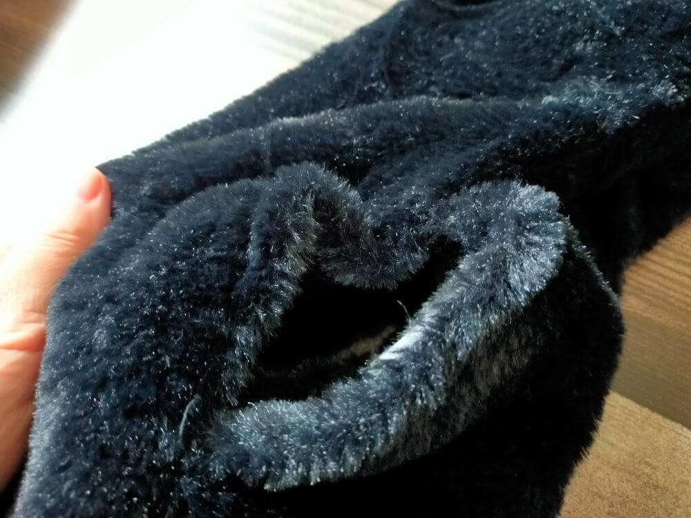 ご近所へのお出かけだけでなく、タウンユースにもいけちゃいそうなくらいのデザイン。安い物だと毛が抜けやすかったり手触りがイマイチになりそうですが、こちらは本当に手触りが抜群に良い!