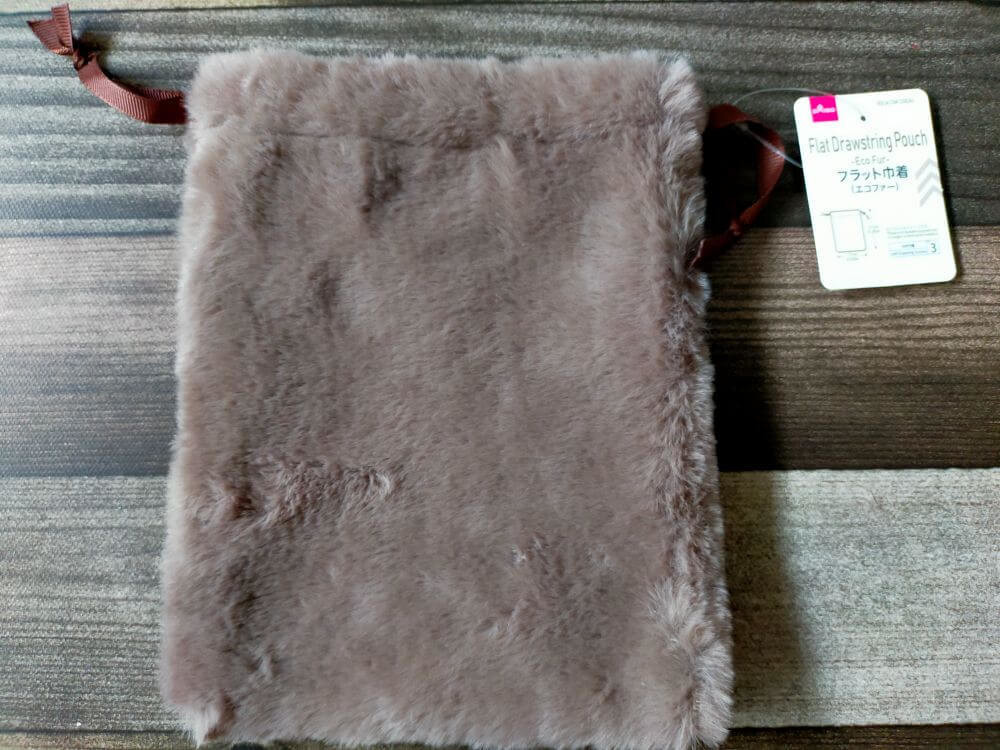リップやハンドクリームを入れておくのに丁度良さそう!手頃なサイズ感がうれしいエコファーの巾着です。何とこちらは110円(税込)で買えちゃうんです。