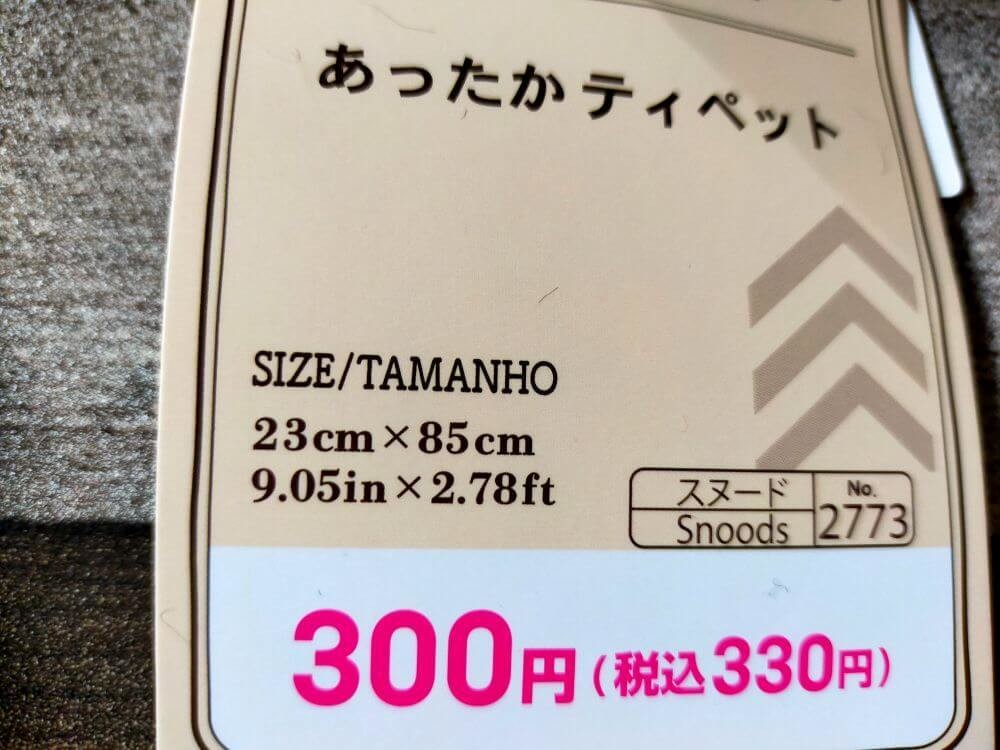 330円(税込)には見えない高級感と肌触り。首に直接当たるものですので肌触りが良いに越したことはありません。