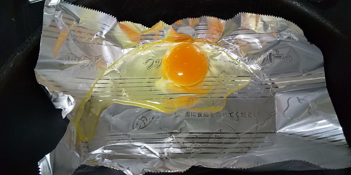 今回は、フライパンに焦げ目をあまりつけたくなかったので、フライパン用アルミホイルを敷いて目玉焼きを焼きました。