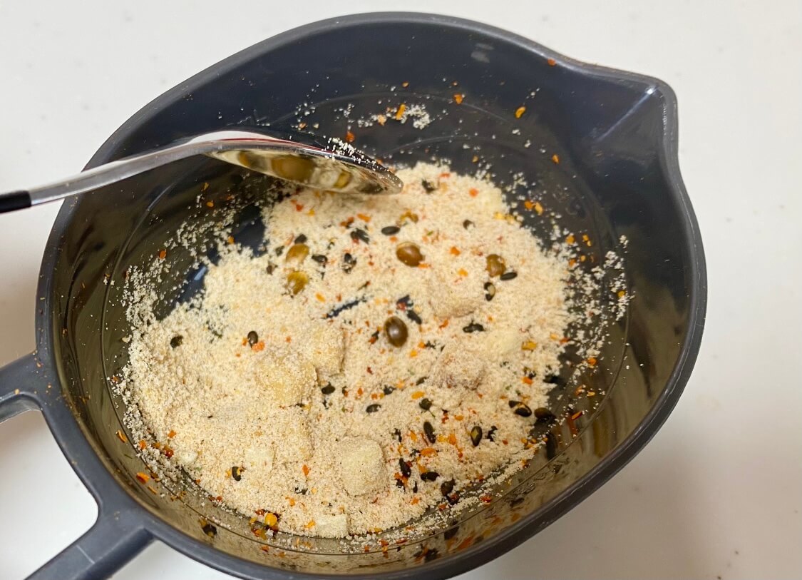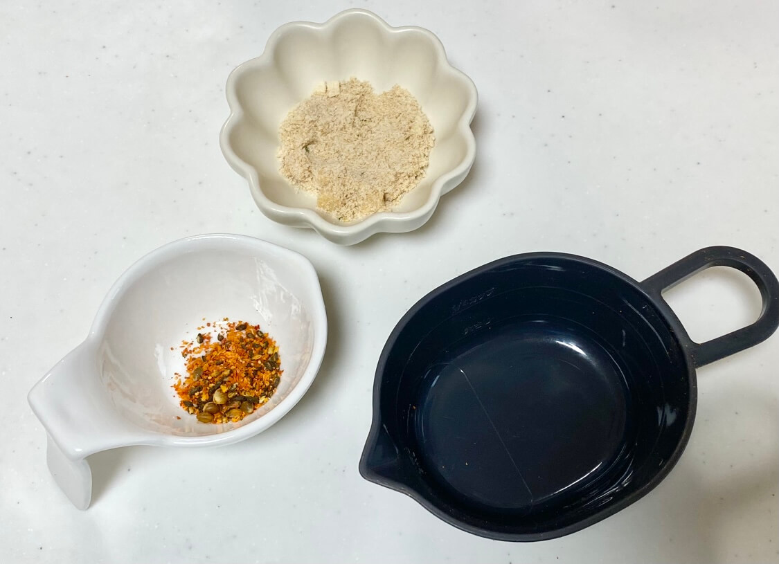 オニオンスープの素と七味唐辛子を混ぜるだけで完成です。