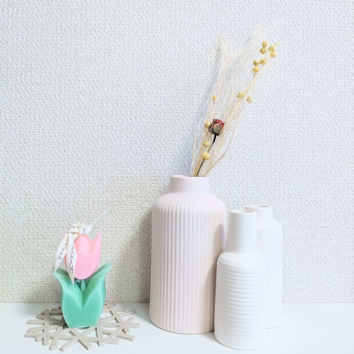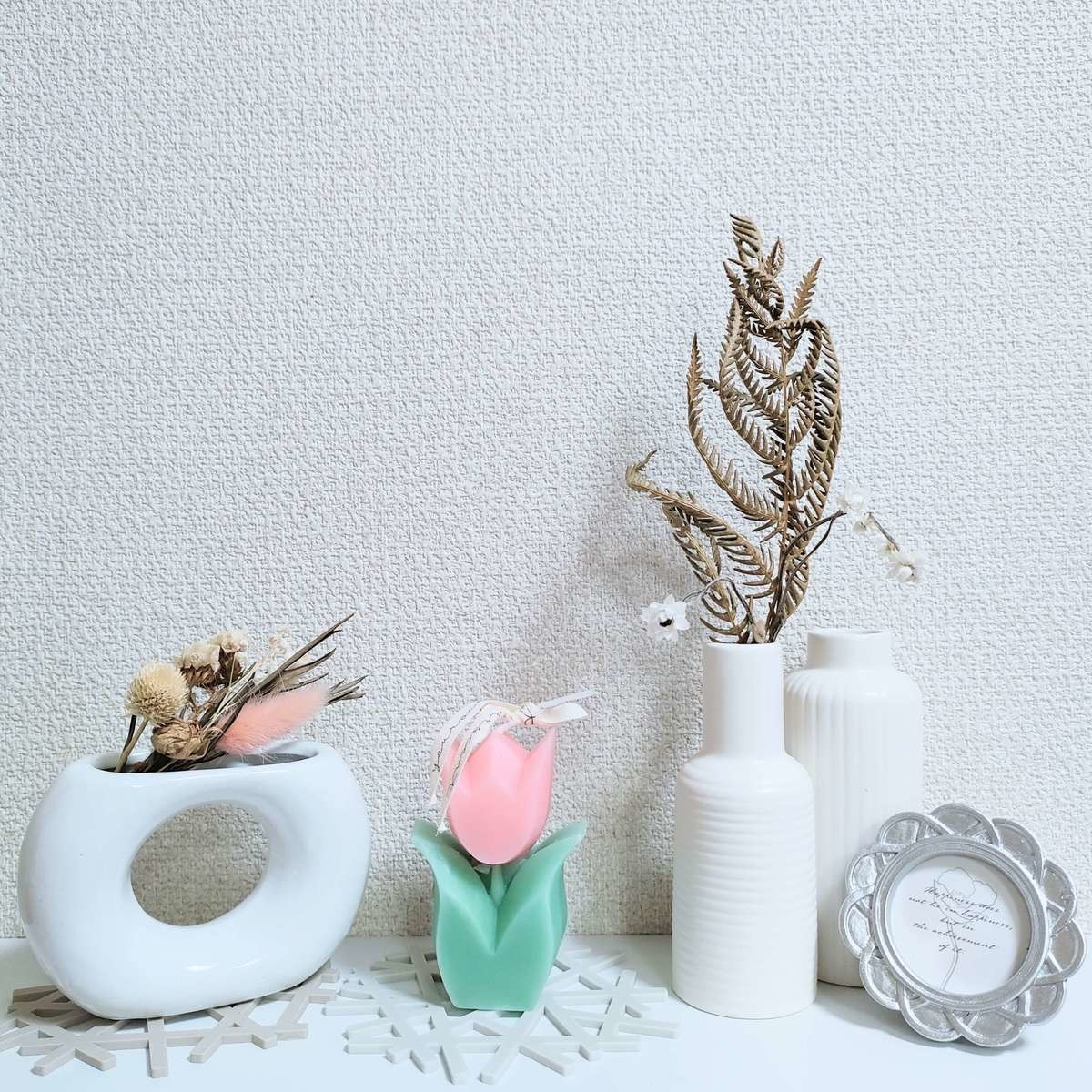 チューリップの形がインテリアのアクセントになって、とっても可愛いです♡キャンドルとして使うのはもったいなくなります(笑)。
