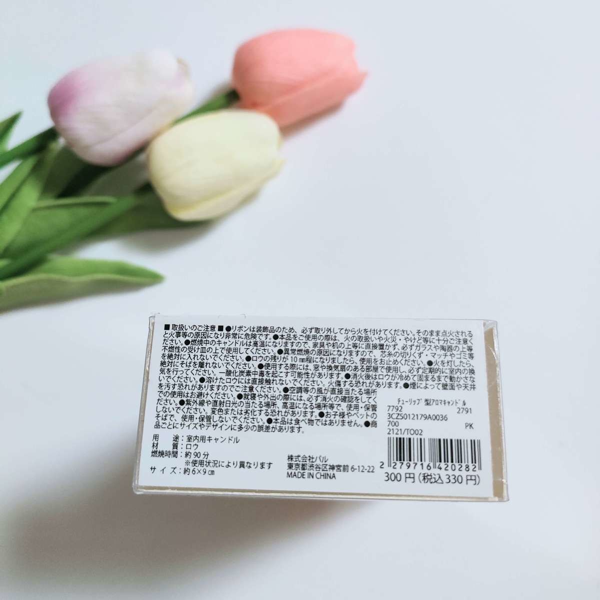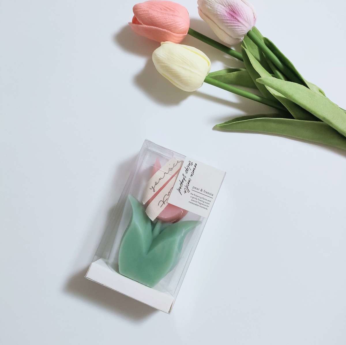 チューリップの可愛い形をしたアロマキャンドル。開封する前からほのかにアロマの香りが漂っています。