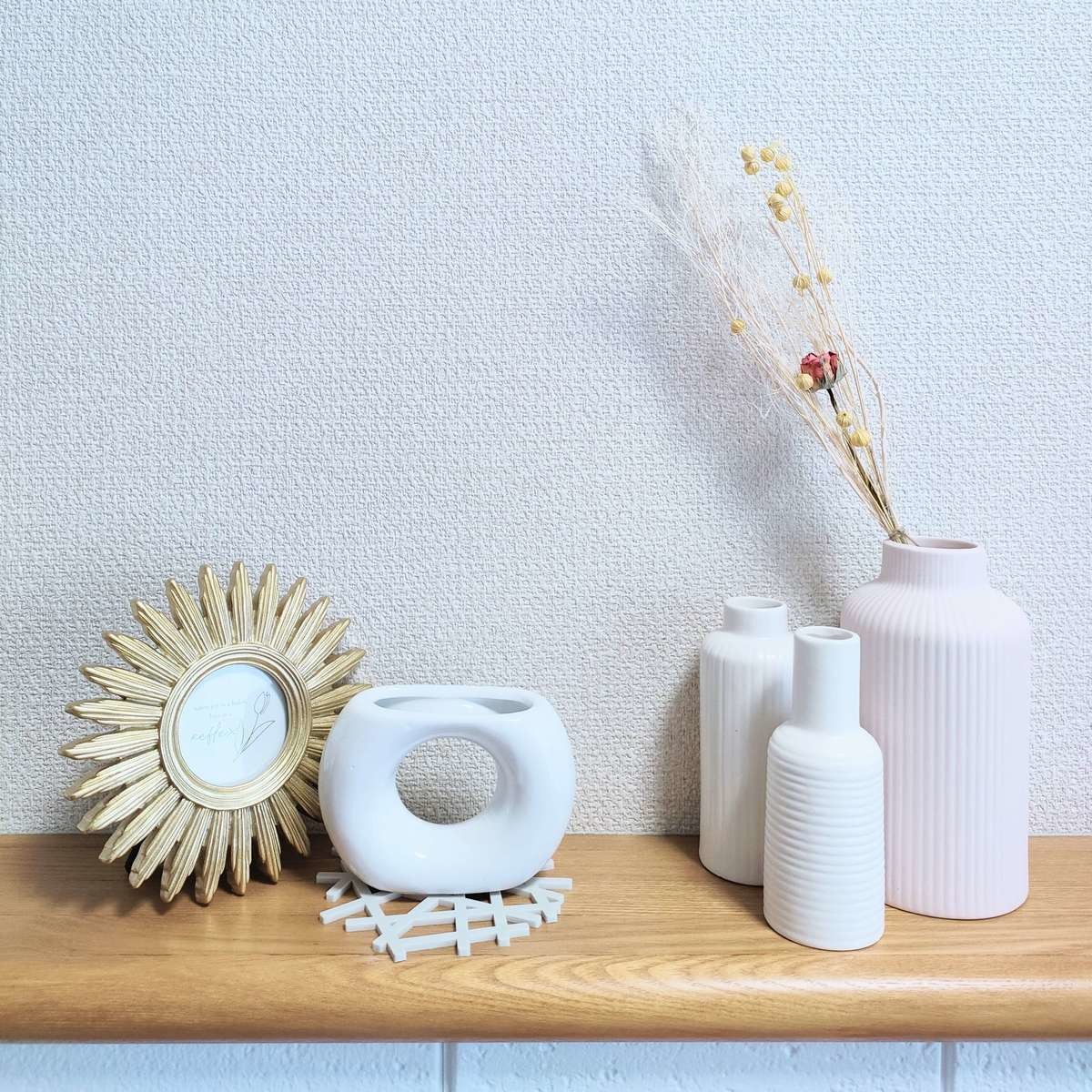 フラワーボトルとドライフラワーとの相性もピッタリ◎一気に韓国インテリアらしく、華やかになりました!