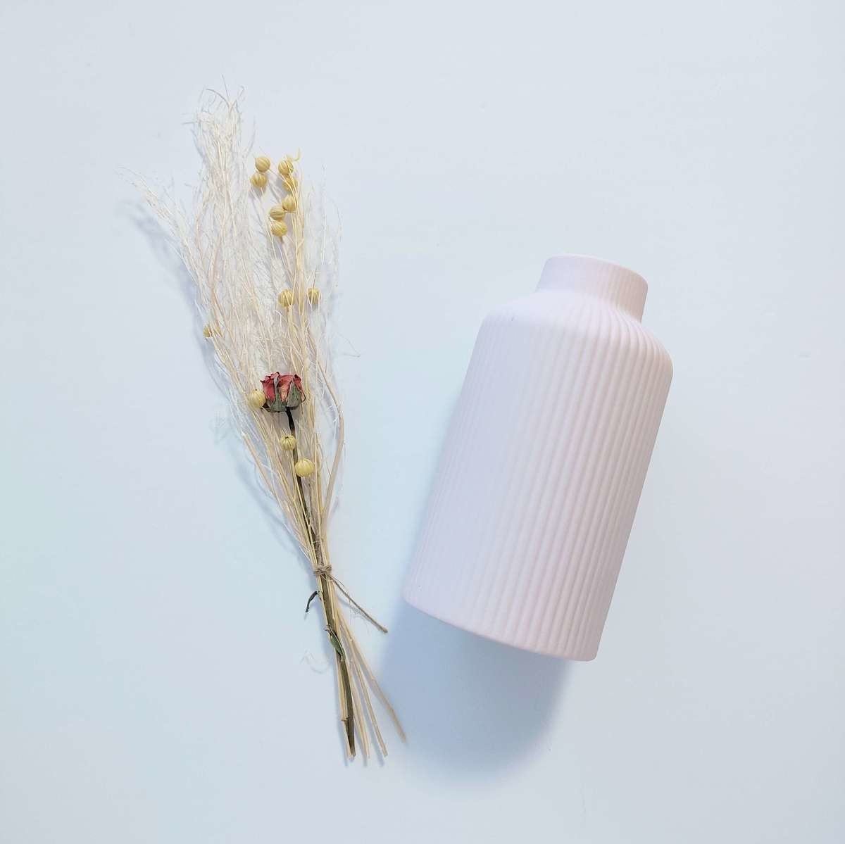 ドライフラワーは数種類ありましたが、こちらの色合いがツボでした♡フラワーベースの淡いピンクとよく合っています。