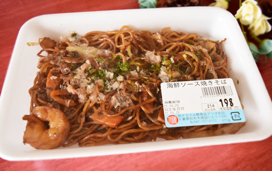 シンプルだけどもたしかな味わい!タカマル鮮魚店「海鮮ソース焼きそば」214円(税込)の正直レポ
