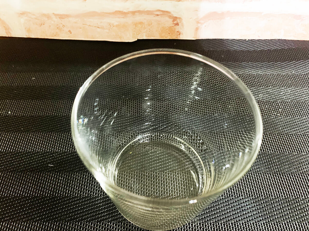 Mの場合、サイズは約直径85×90mm、重さは約190gです。強化ガラスの素材はソーダガラスで、食洗機使用も可能です。ただし、無印の製品の場合は耐熱ガラスではないため、電子レンジは使用不可。その点を注意してくださいね。