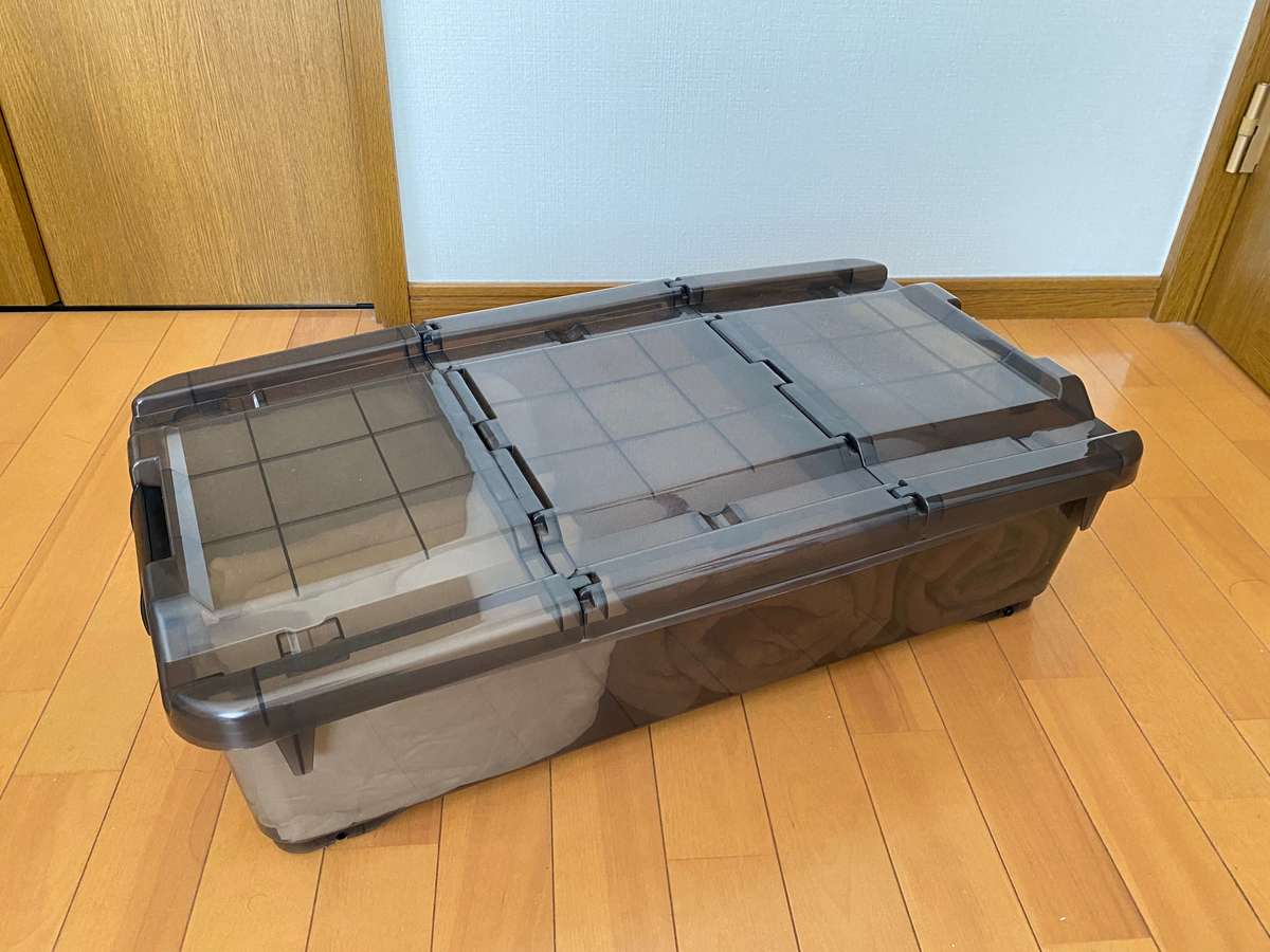 一見何の変哲もない衣装ケースに見えますよね。ですが、キャリコオレアも、フタに秘密があるんです。