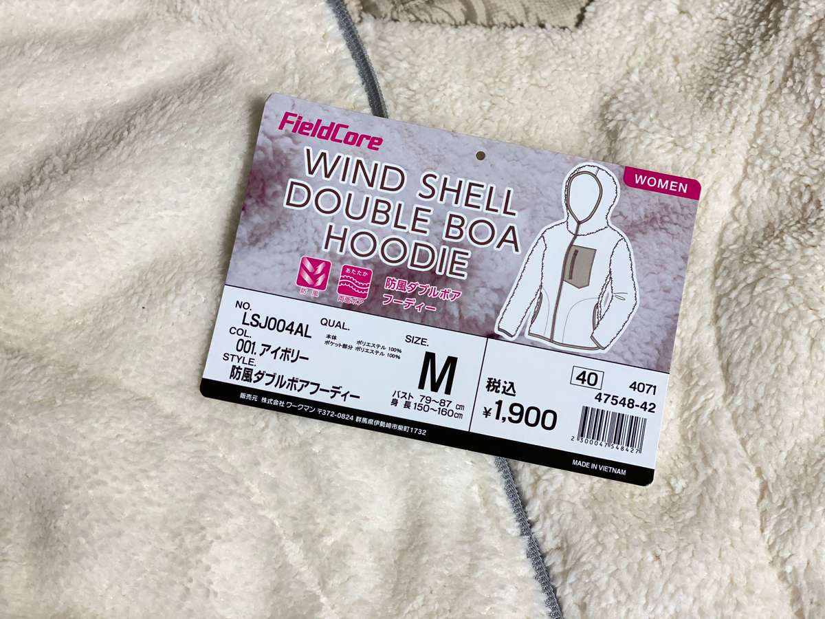 ファッションも防寒も併せ持っていて、なおかつコストは抑えたい!という方にオススメなのが、ワークマン「防風ダブルボアフーディー 1,900円(税込)」!