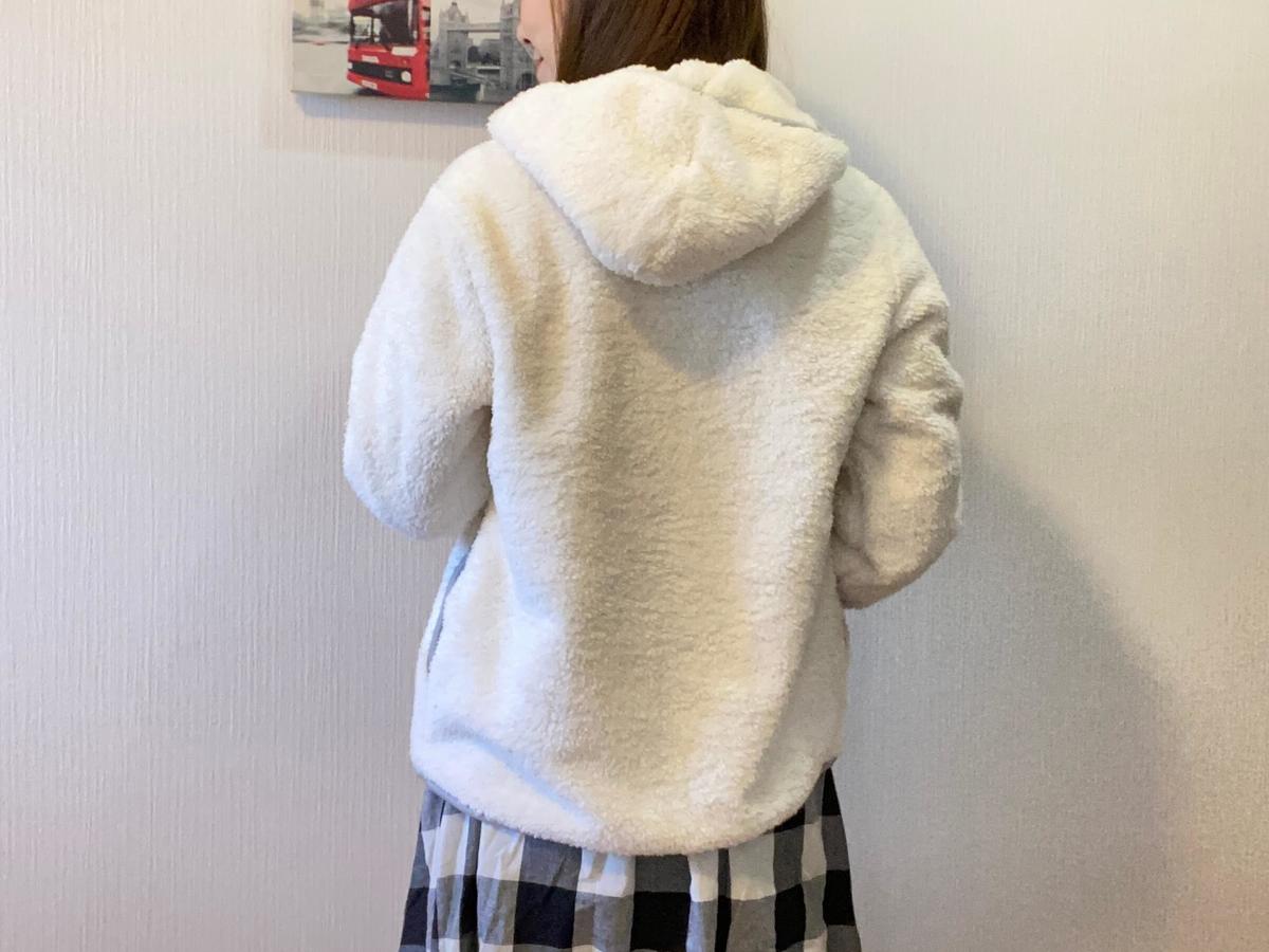 商品名にもなっているように、ボア素材にもかかわらずなんと防風加工が施されています!冷たい北風が吹いて寒い日も、薄手のTシャツにこのアウターでも全く問題ありませんでした。