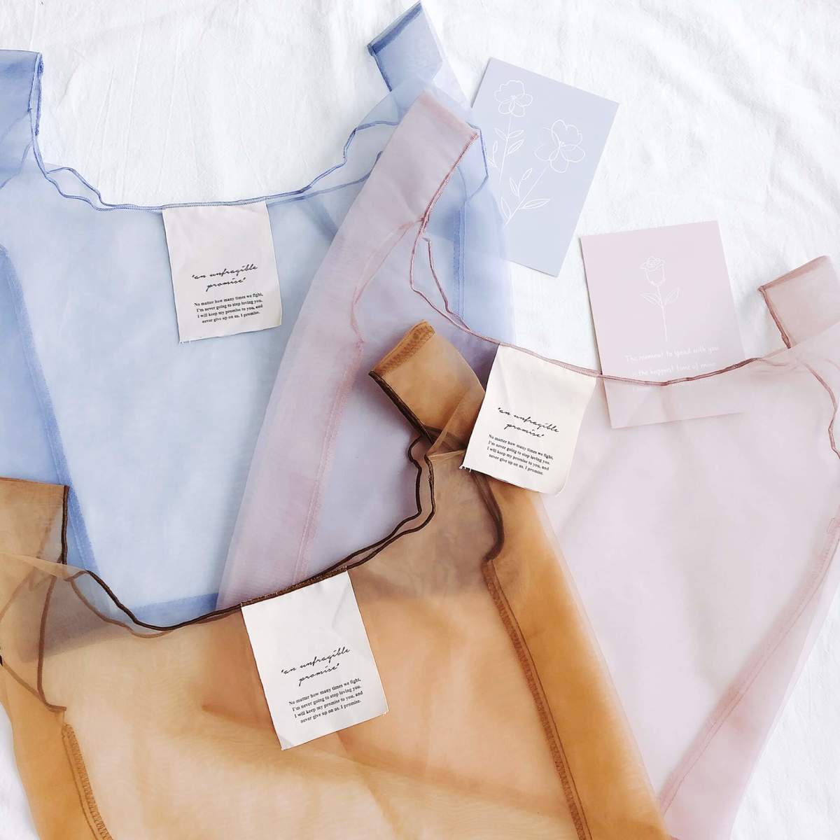 おしゃれな透け感とタグで「韓国っぽさ」が引き立ちます。