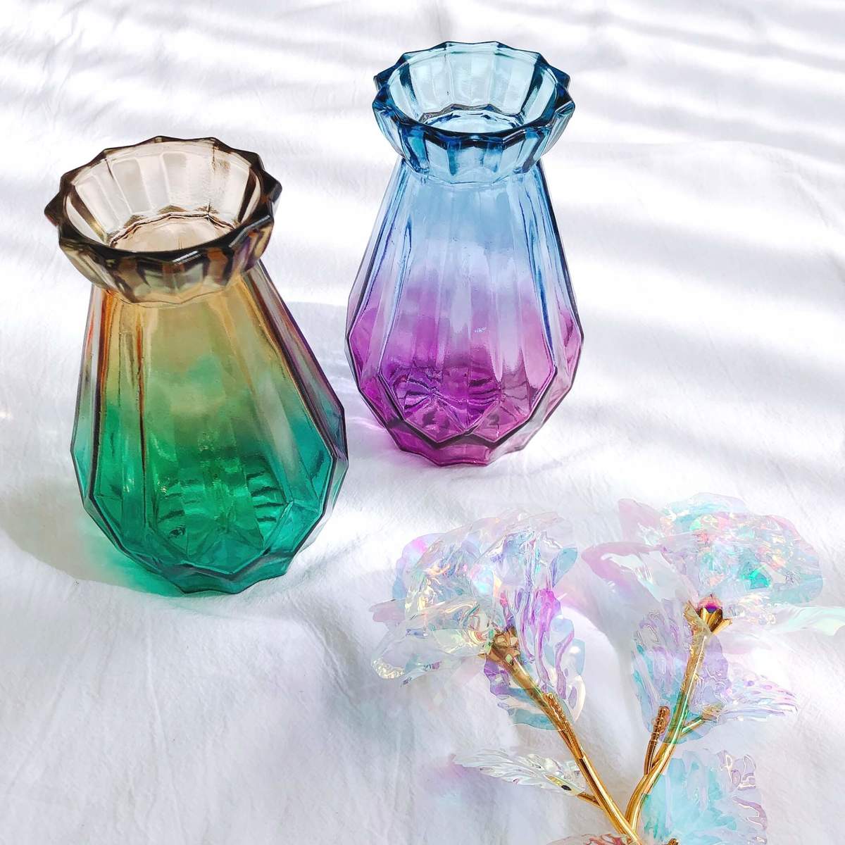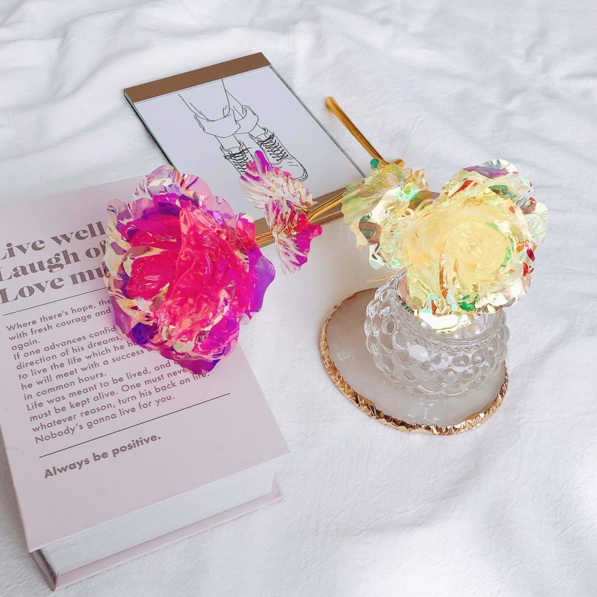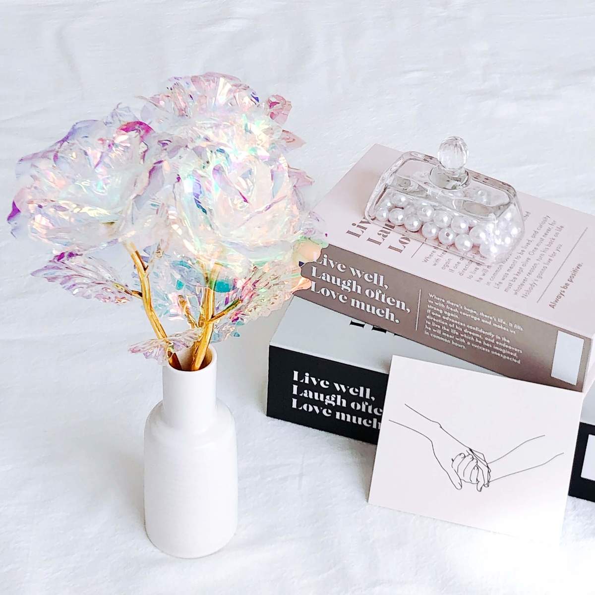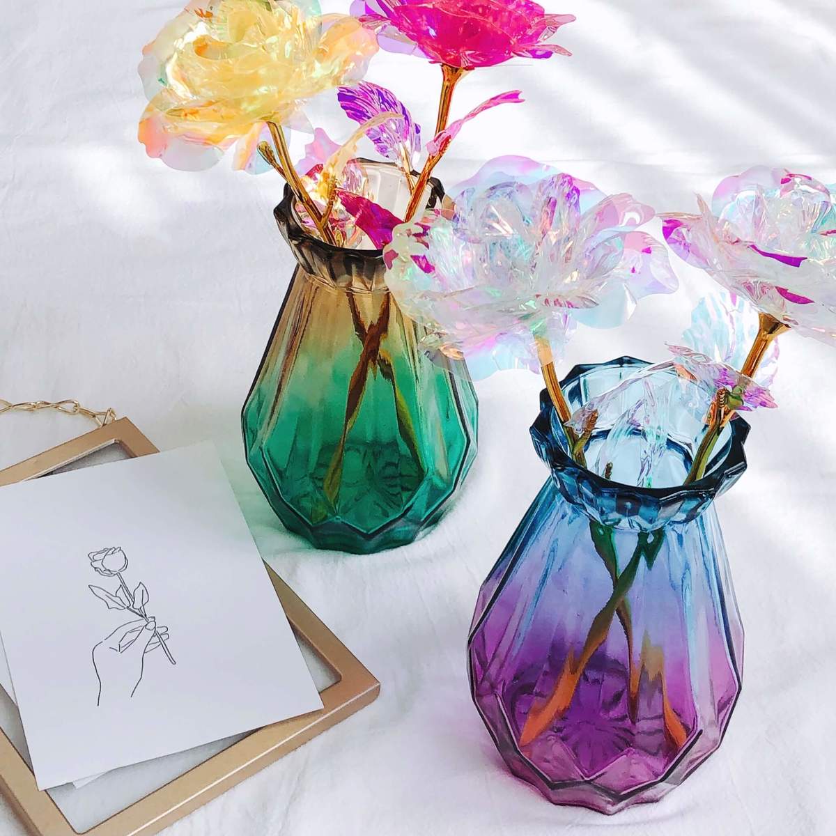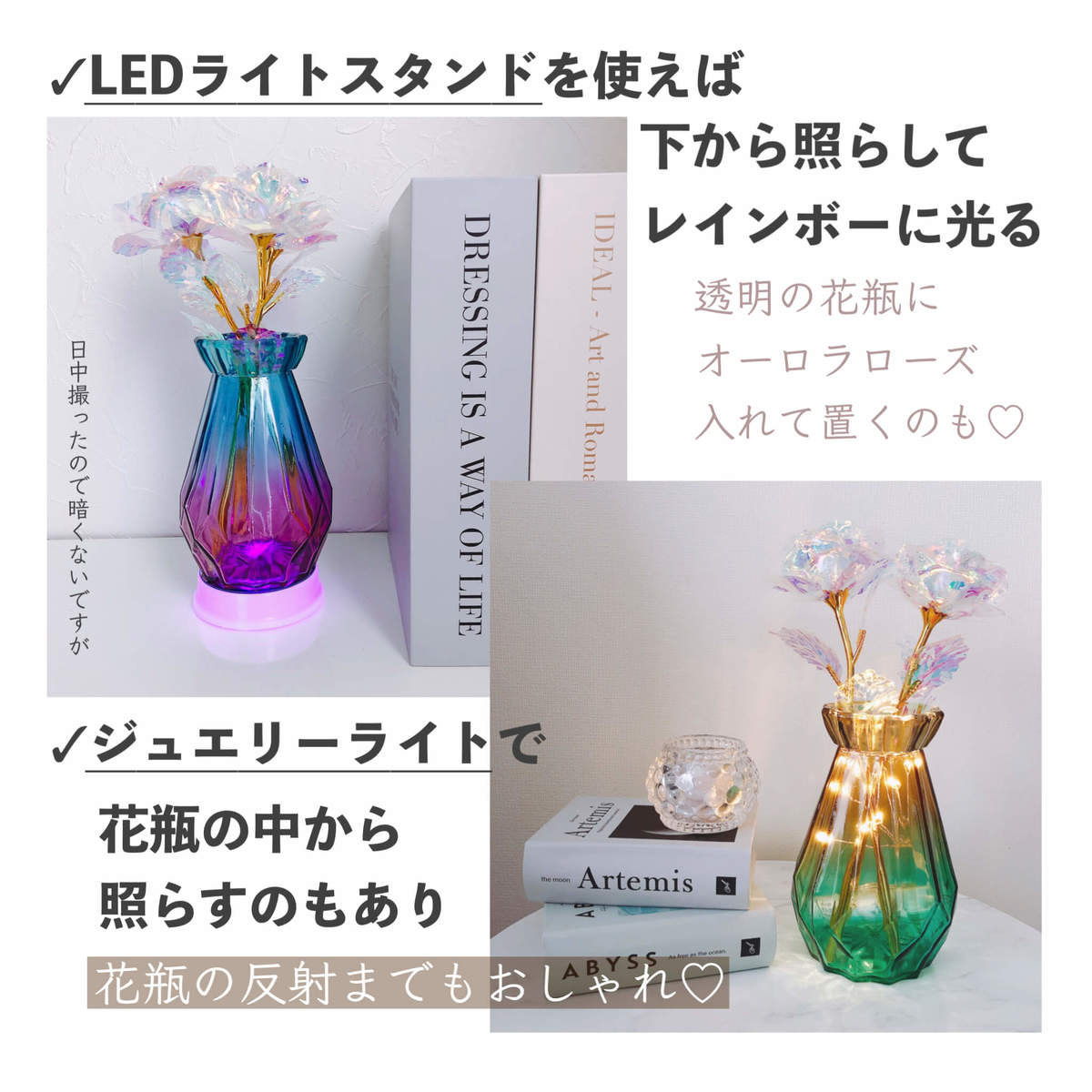 透明の花瓶にオーロラローズ入れて照らすのもおしゃれ♡