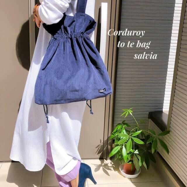 巾着のくしゅっと感がやっぱり可愛い!2wayコーデュロイトートバッグ