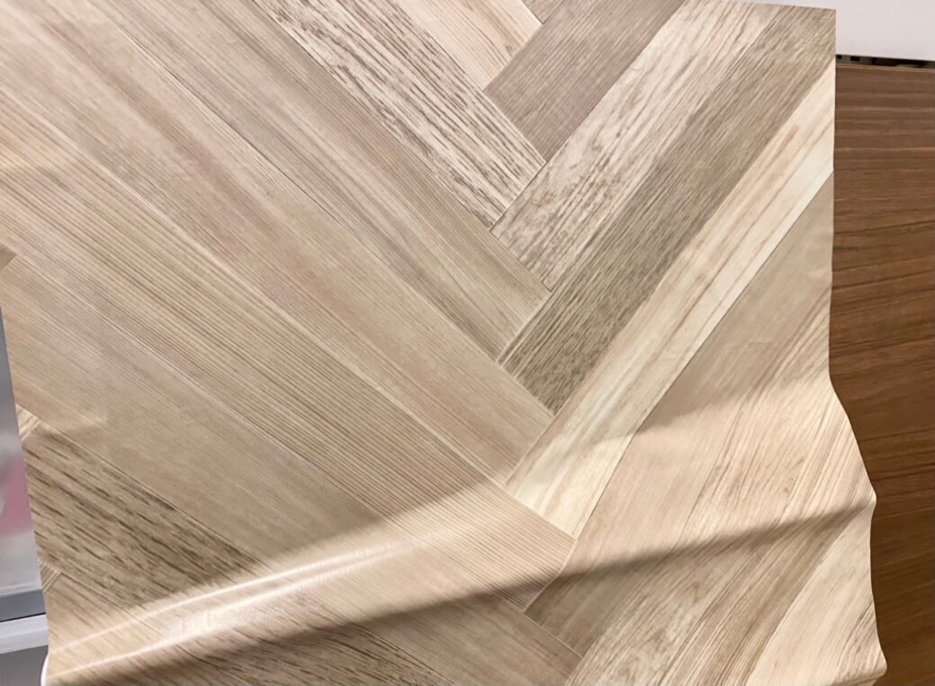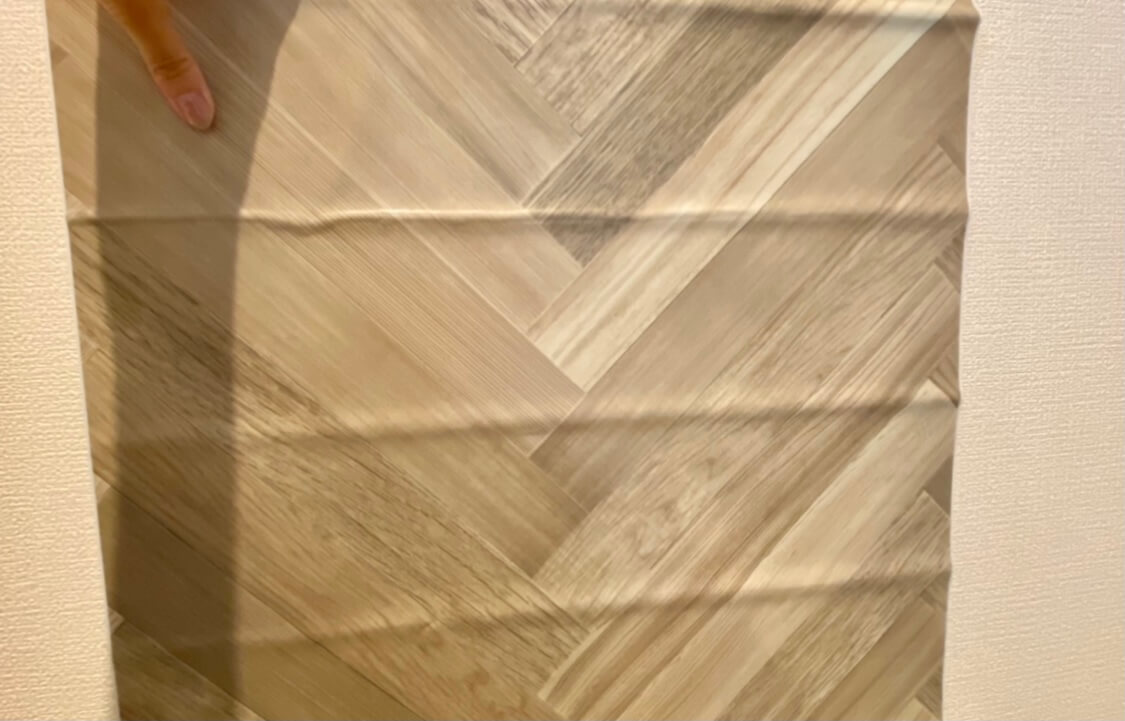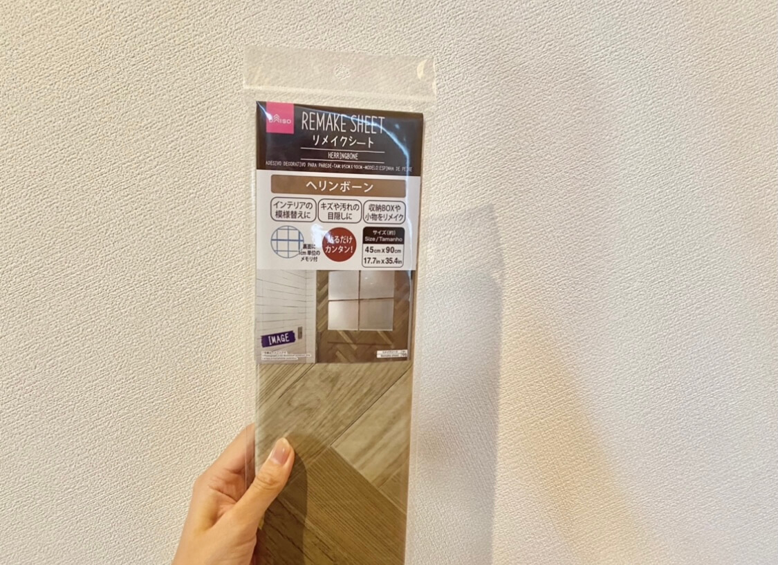 少しくすんだヘリンボーン柄の木目がリアルで、100円には見えない高見えリメイクシートです。